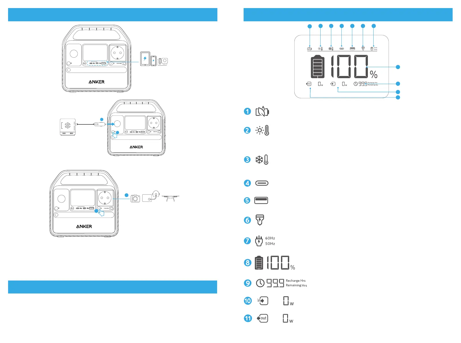 1. Die USB-A- und USB-C-Anschlüsse unterstützen Plug & Charge. Wenn die Geräte eingesteckt werden,