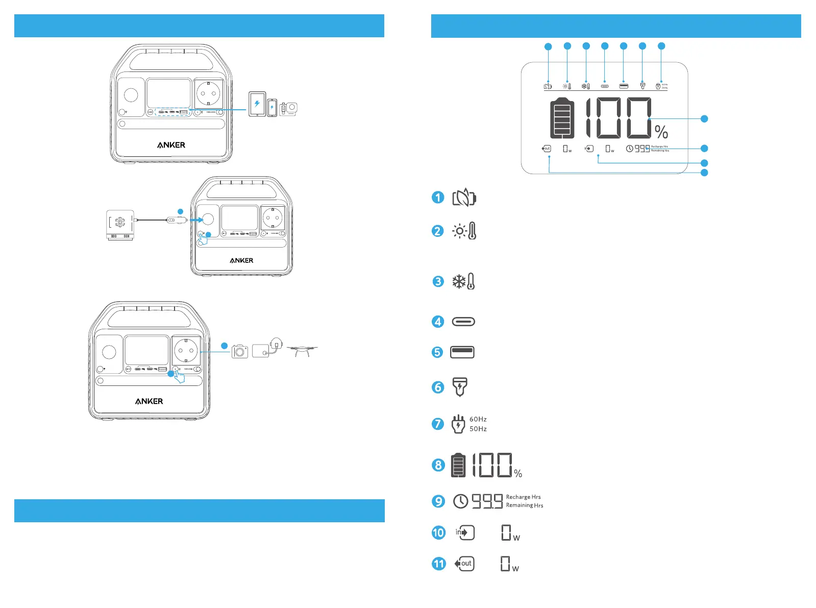1.Le porte USB-A e USB-C supportano la ricarica. I dispositivi collegati inizieranno a caricarsi automaticamente; al