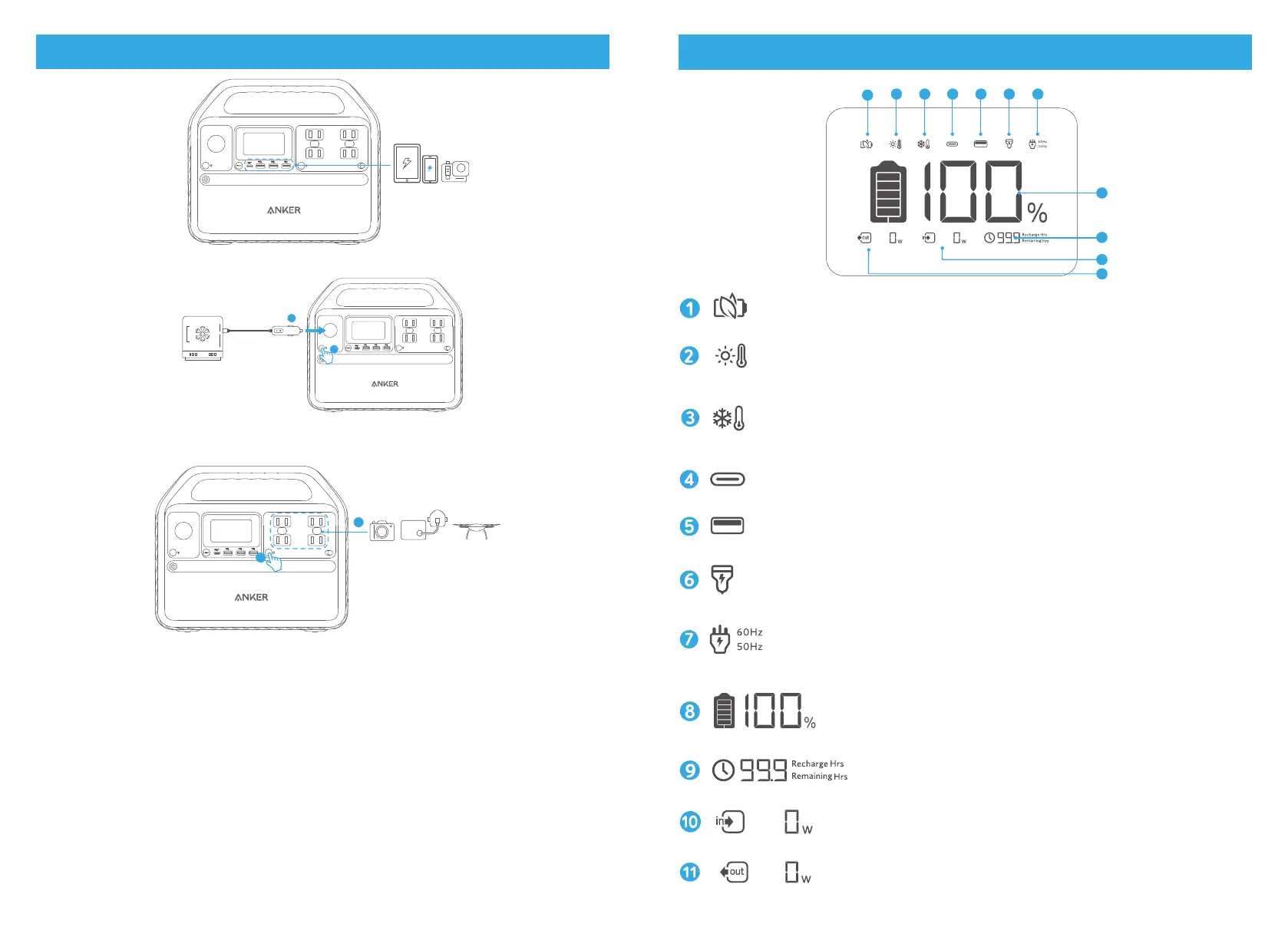 1. The USB-A and USB-C ports support plug and charge. When devices are plugged in, they will start charging