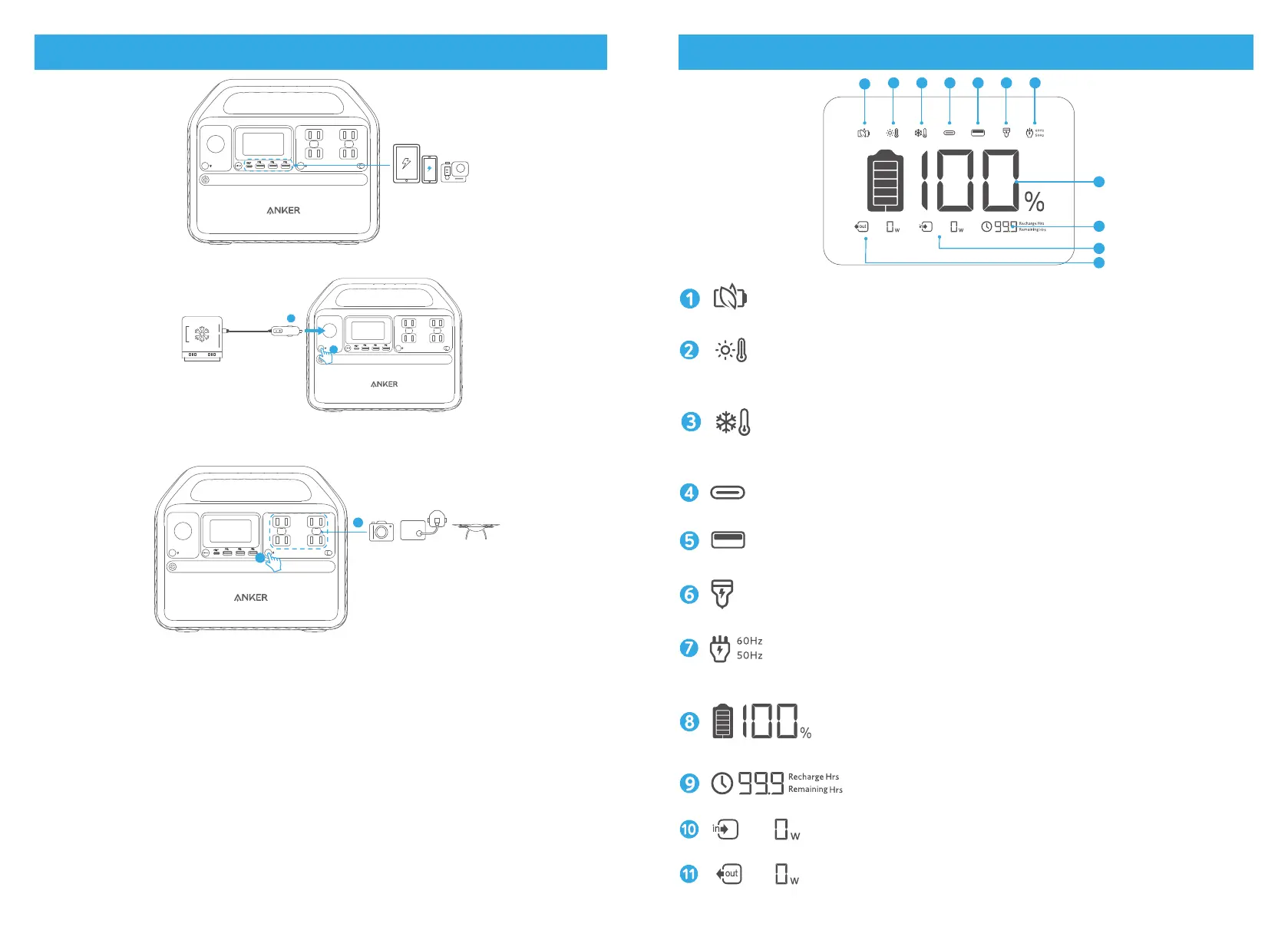1.USB-A および USB-C ポートに機器を接続すると、自動的に充電を開始します。機器を取り外
