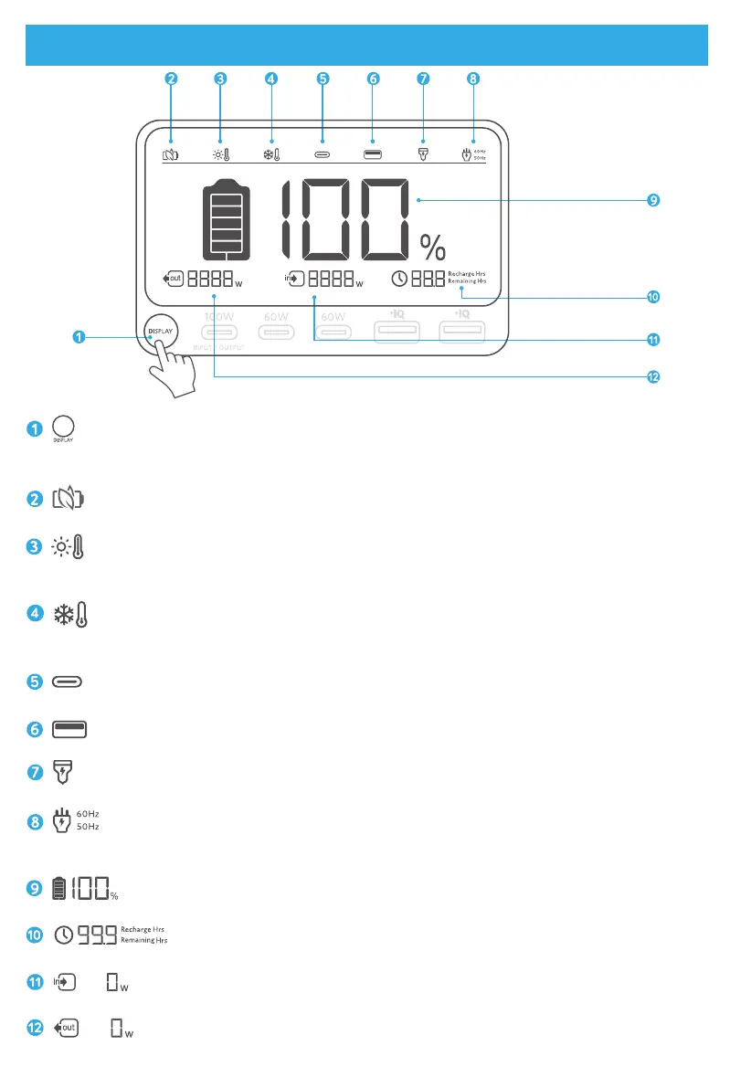 Press the AC output port on/o button for 2 seconds to switch the frequency.