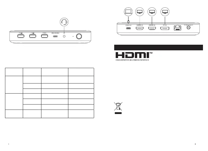 Conecte la base a un máximo de tres monitores a través de los puertos