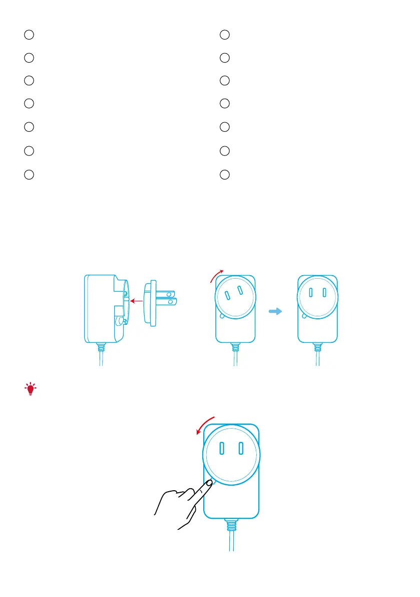 1. Fişin oyuğunu, güç adaptöründeki pimlerle hizalayın.