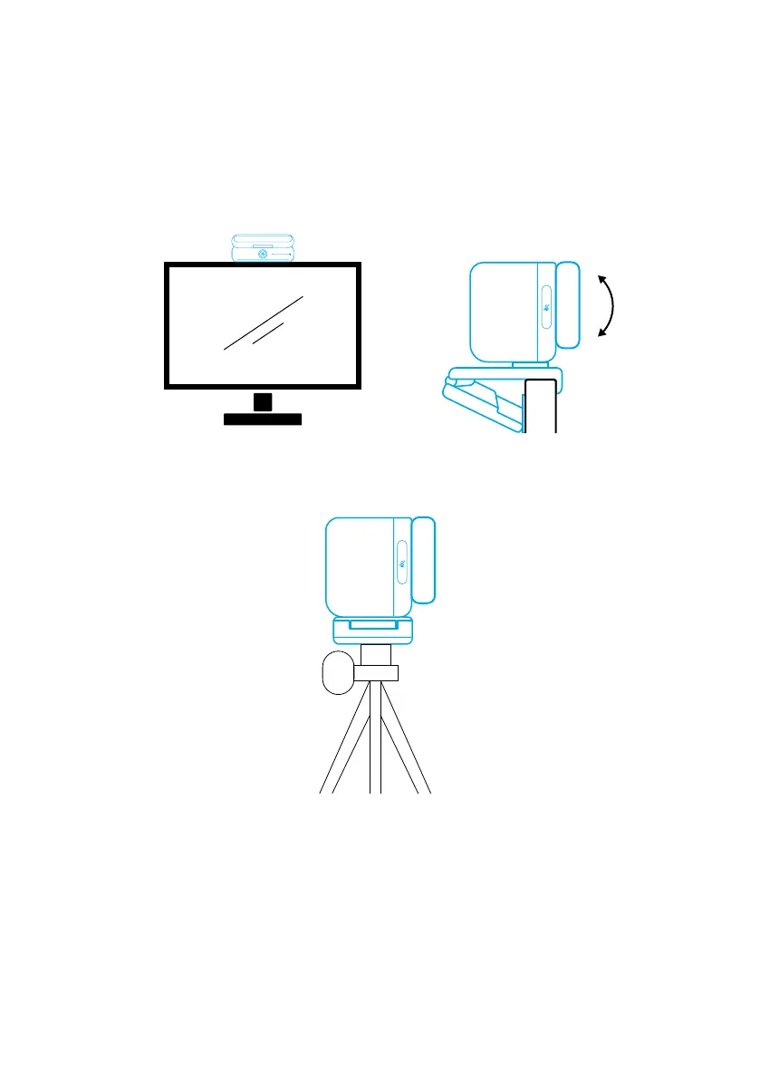 1.클립을 펼쳐 모니터 상단에 맞춥니다 .단단히 고정될 수 있도록 클립을 기기 뒷면에 대