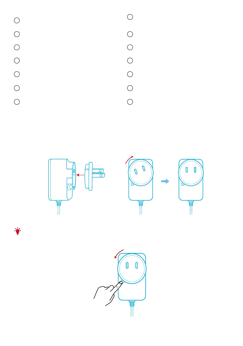 1. Alinee la ranura del enchufe con las clavijas del adaptador de corriente.