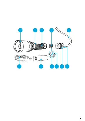 4. Battery compartment cap 10. 18650 rechargeable battery