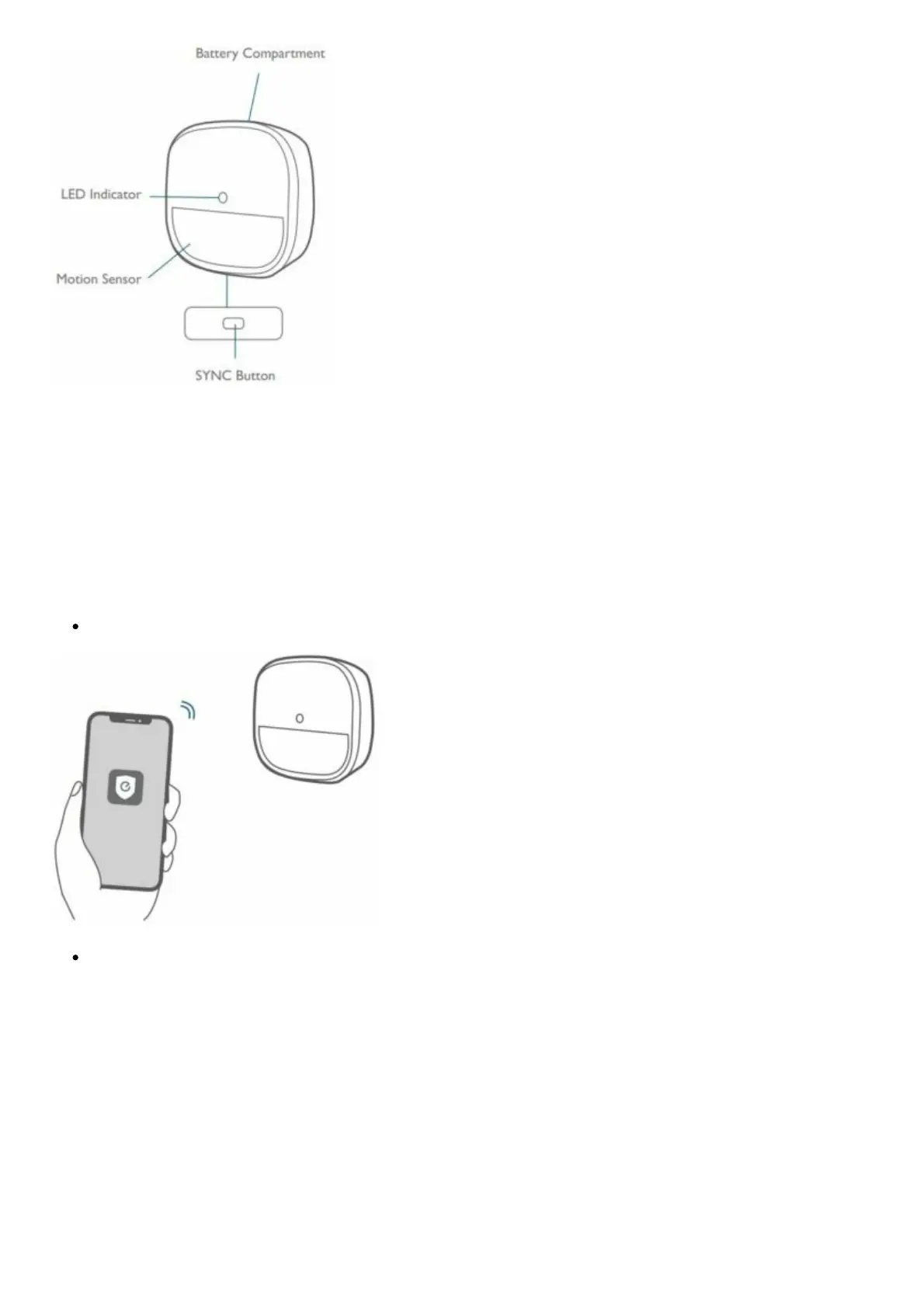 Press and hold the SYNC button for 2 seconds until the LED indicator blinks blue. The Motion