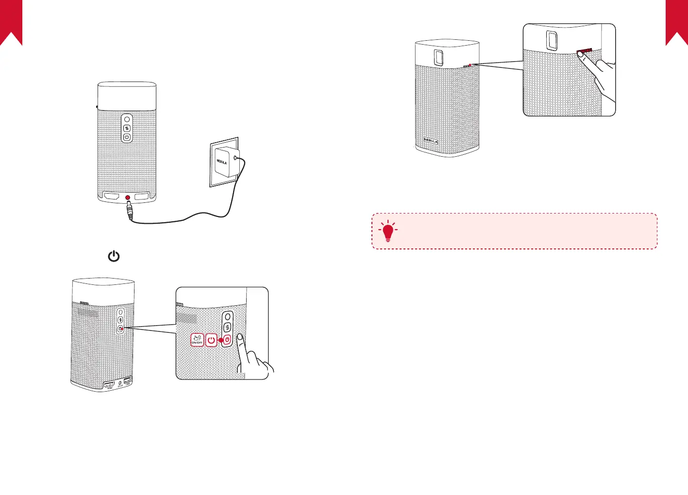 Tenere premuto sul proiettore per 2 secondi per accenderlo.