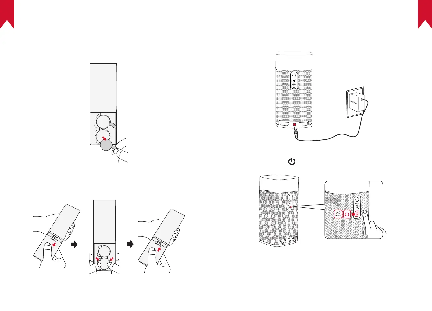 ① 初めて使用する時は、プラスチック製の電池装着タブをはずして、