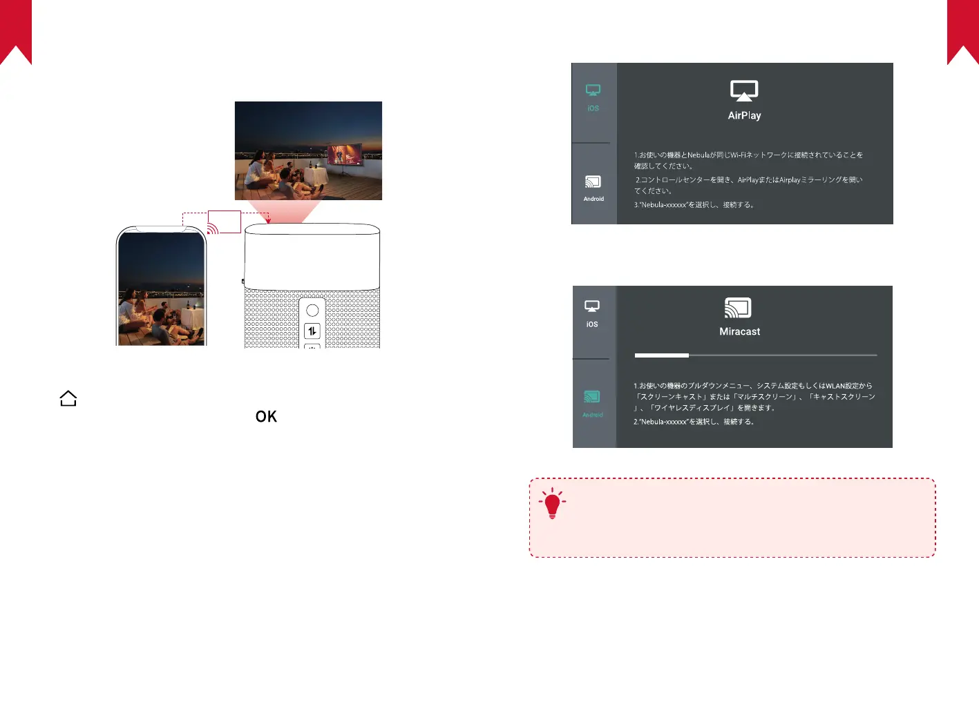 スマートフォンやタブレットの画面を投影面にワイヤレスで投影でき