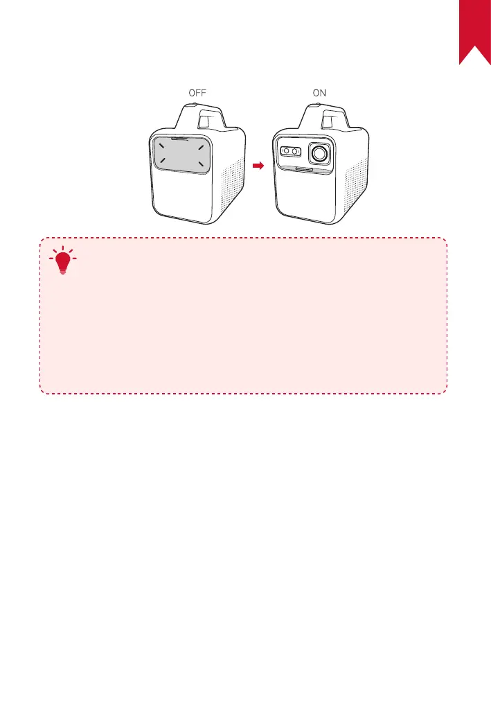 Slide the lens cover down to turn on the projector, and slide up to turn it off.