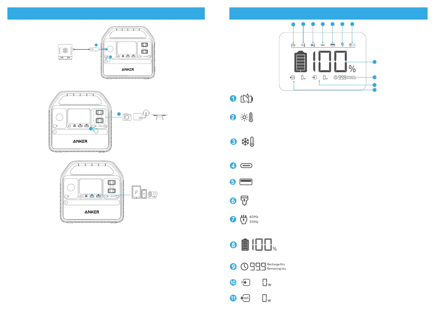 1.USB-A および USB-C ポートに機器を接続すると、自動的に充電を開始します。機器を取り外
