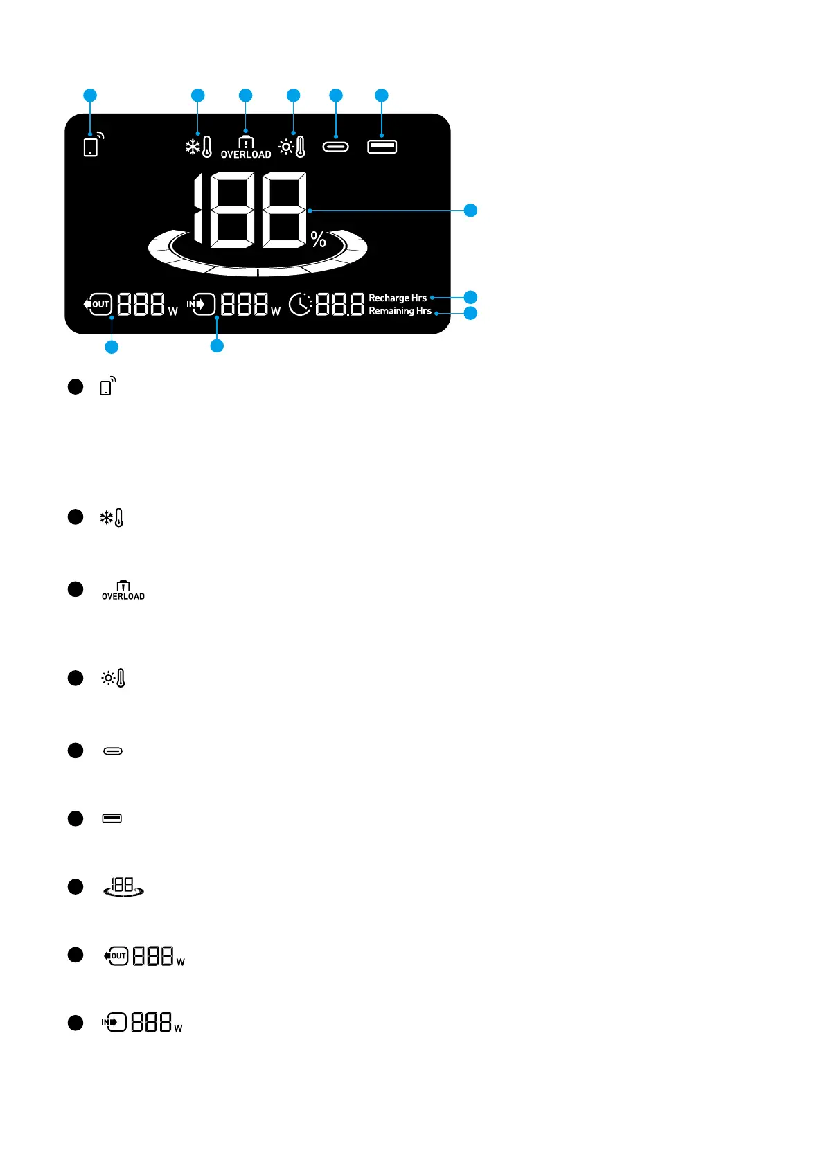 When this icon shows, stop using the power station and let it cool down until the icon disappears.