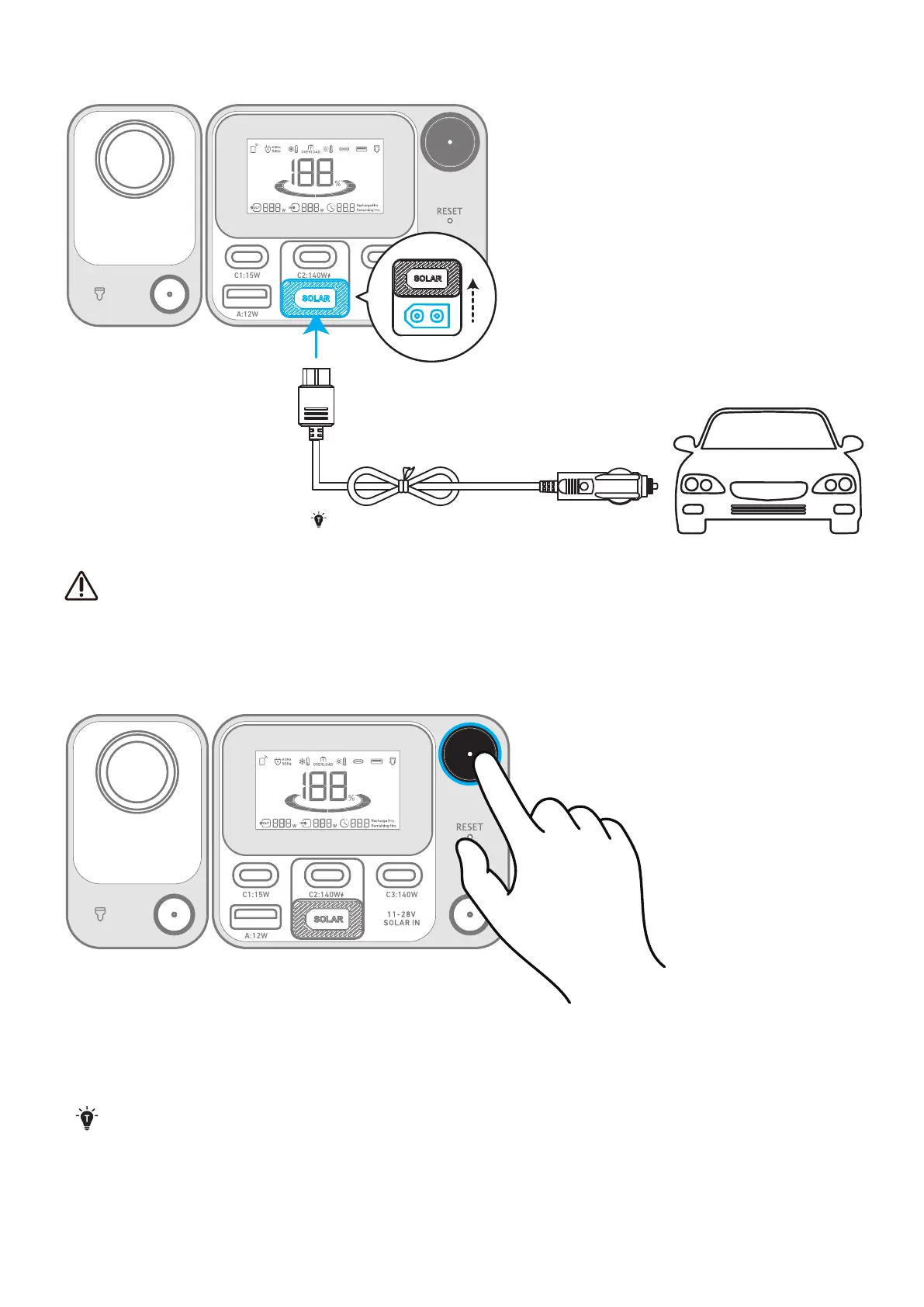 Recharge your power station by connecting to a DC output port with the DC charging cable.