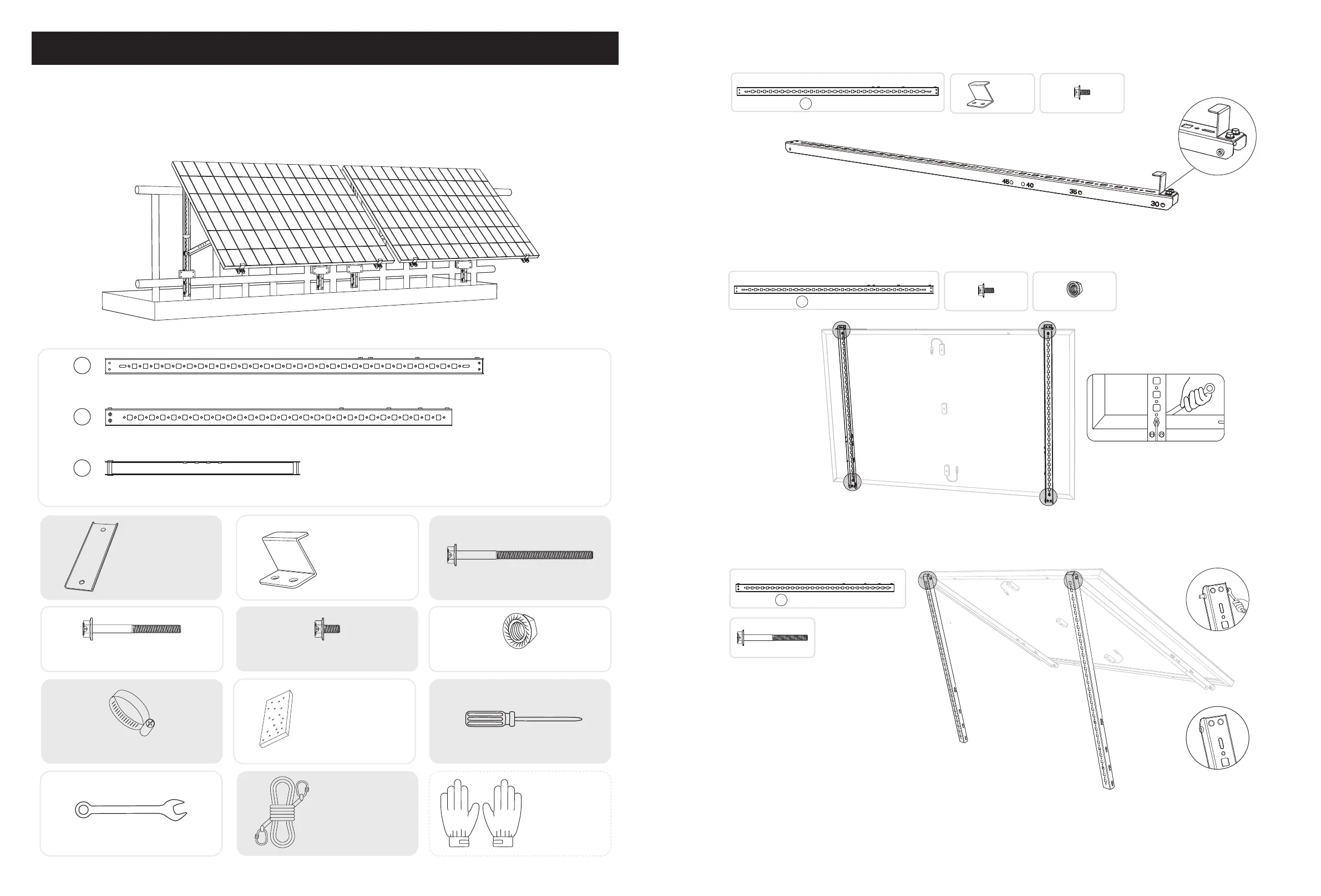 4. Mount the lower support beams and adjust the angle for maximum sunlight exposure.