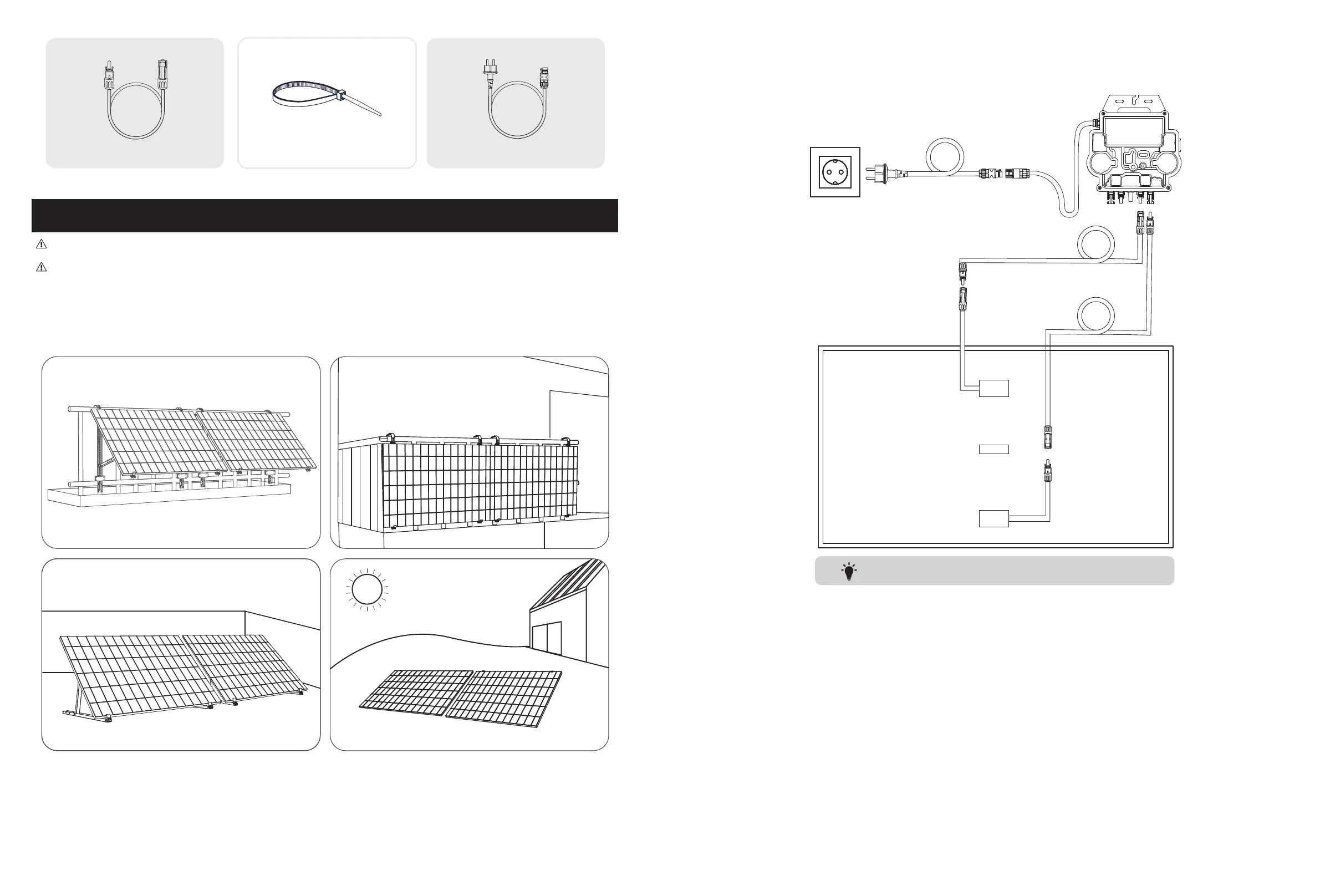 Wenn Sie die Solaranlage sofort überprüfen und in Betrieb nehmen möchten, sollten Sie die Montage bei sonnigem Wetter durchführen.