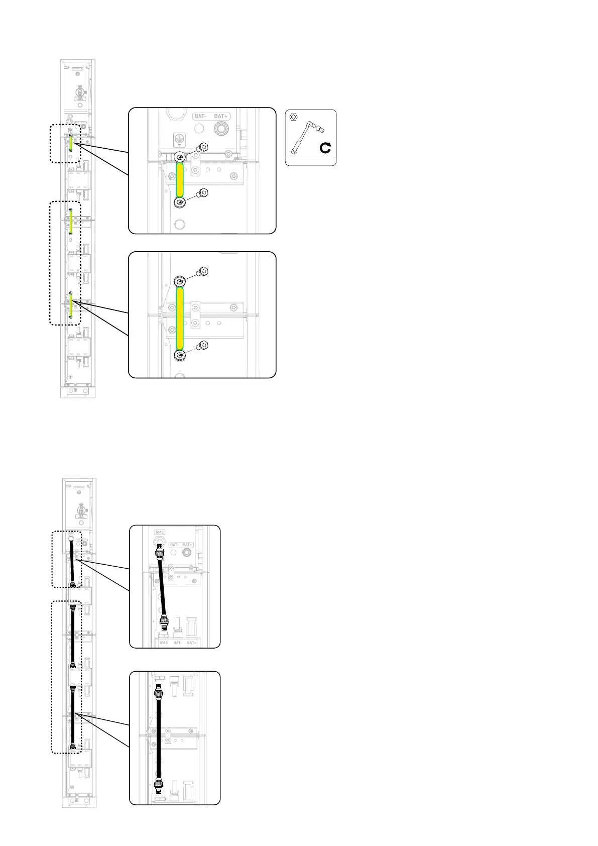 Loosen the locking caps, insert the RJ45 signal cables (black, included) into the BMS ports, and rotate the locking caps to