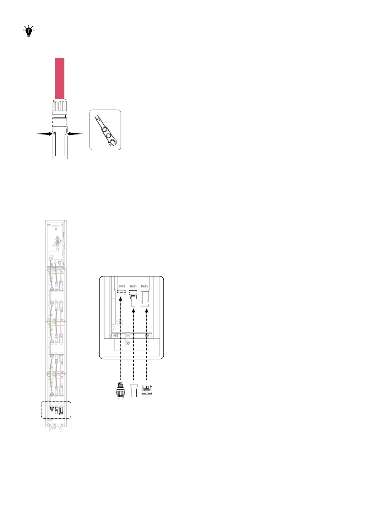 On the bottom battery module, insert an RJ45 connector (with 2×120Ω terminating resistor, included) into the BMS port, a