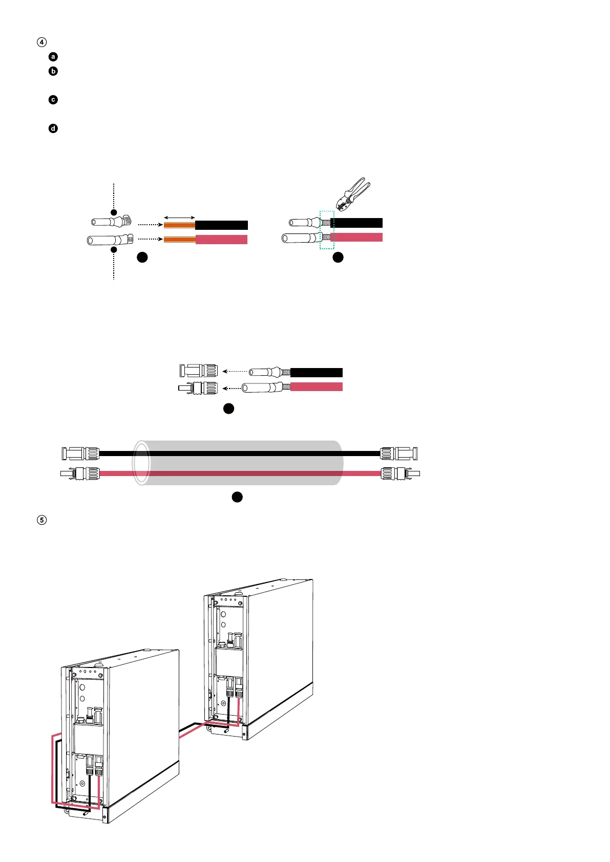 Crimp the positive and negative metal terminals (included) onto the corresponding cables. Make sure the terminals are