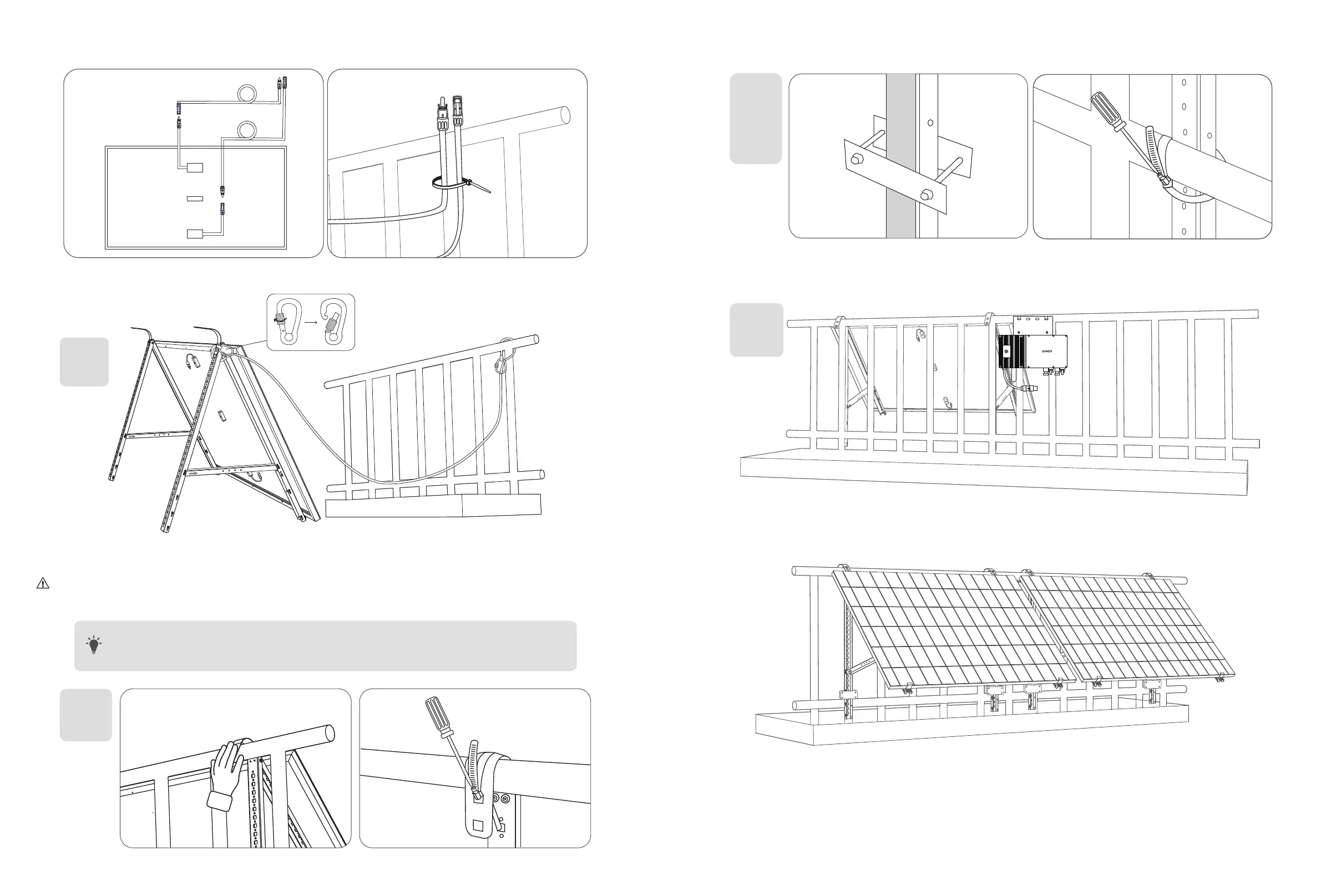 Note: To avoid falling, secure the solar panel extension cable on the balcony railings temporarily with zip ties.
