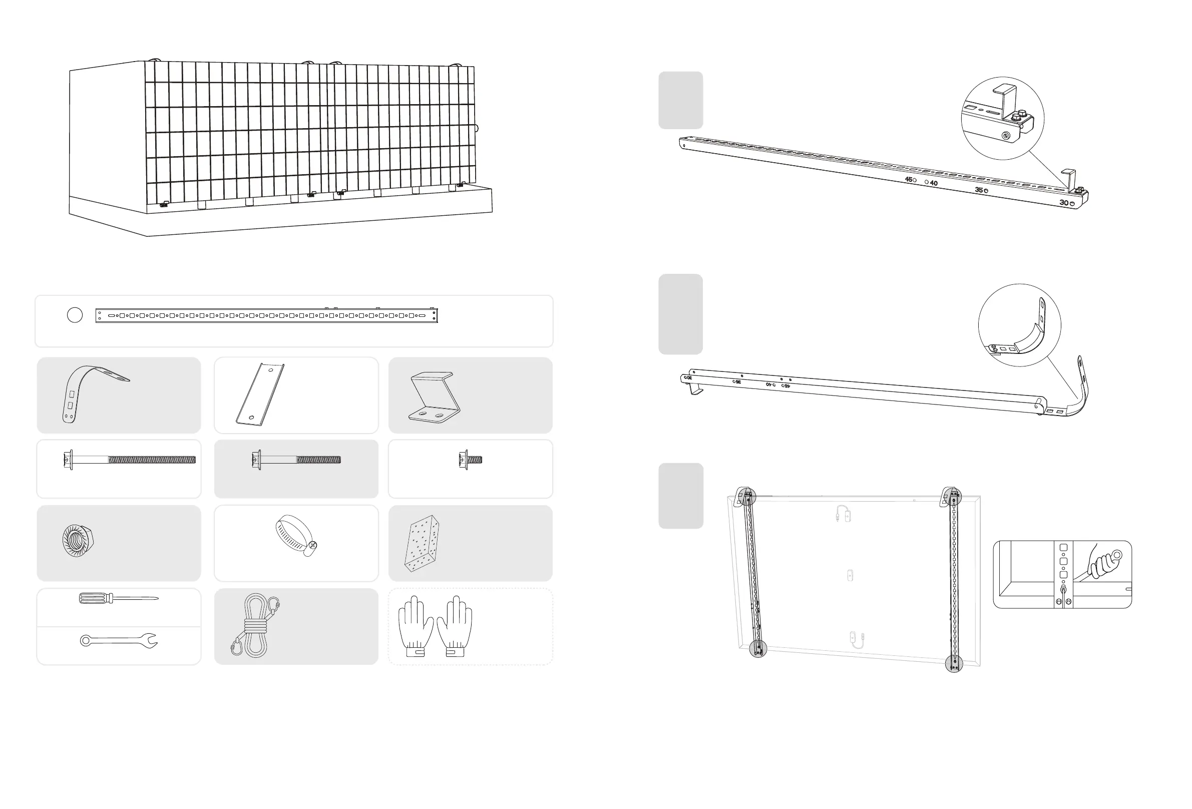 1. Attach the limit supports to the numbered end of the solar panel's support beams.