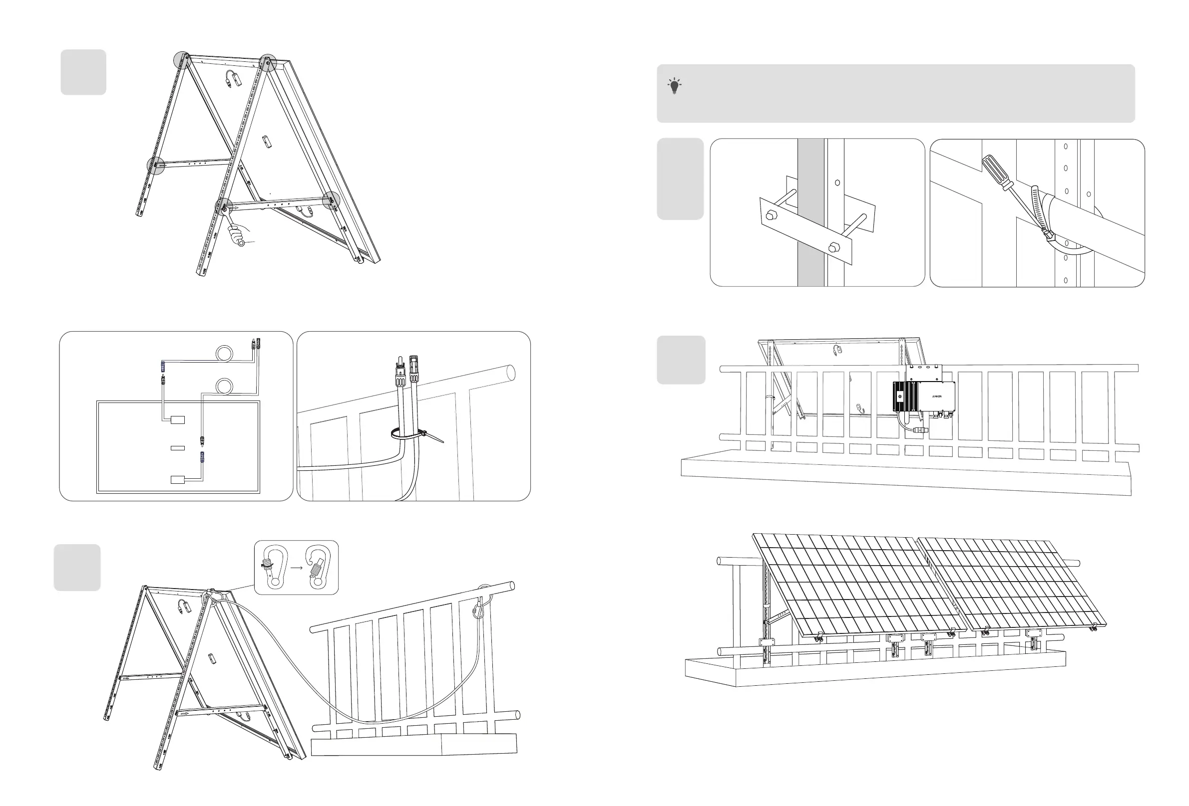 8. Bringen Sie die Halterungen für das Solarpanel am Balkongeländer an und befestigen Sie sie dann mit Befestigungsklemmen