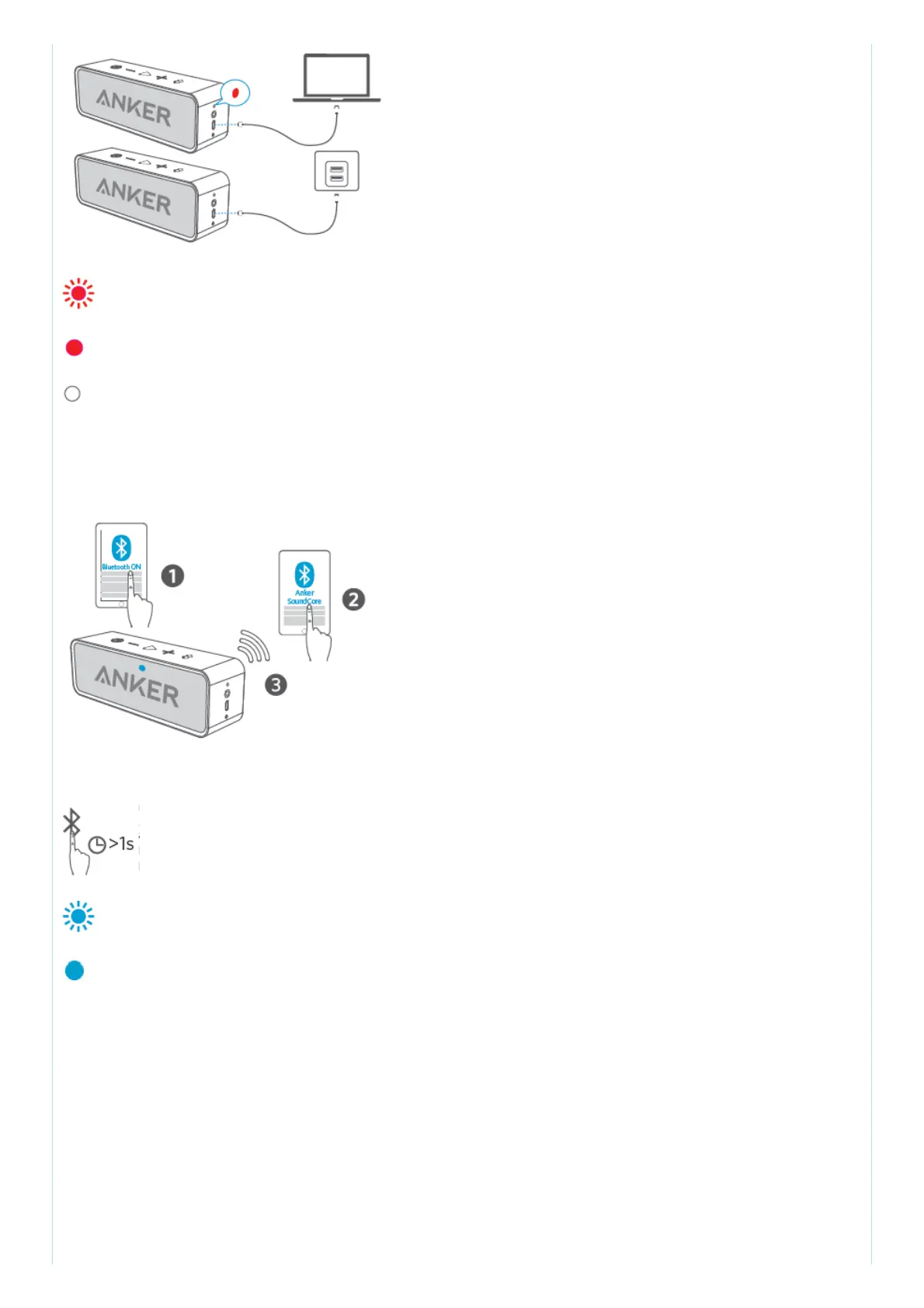 Use the included USB cable to charge your SoundCore and make sure it is fully charged before first
