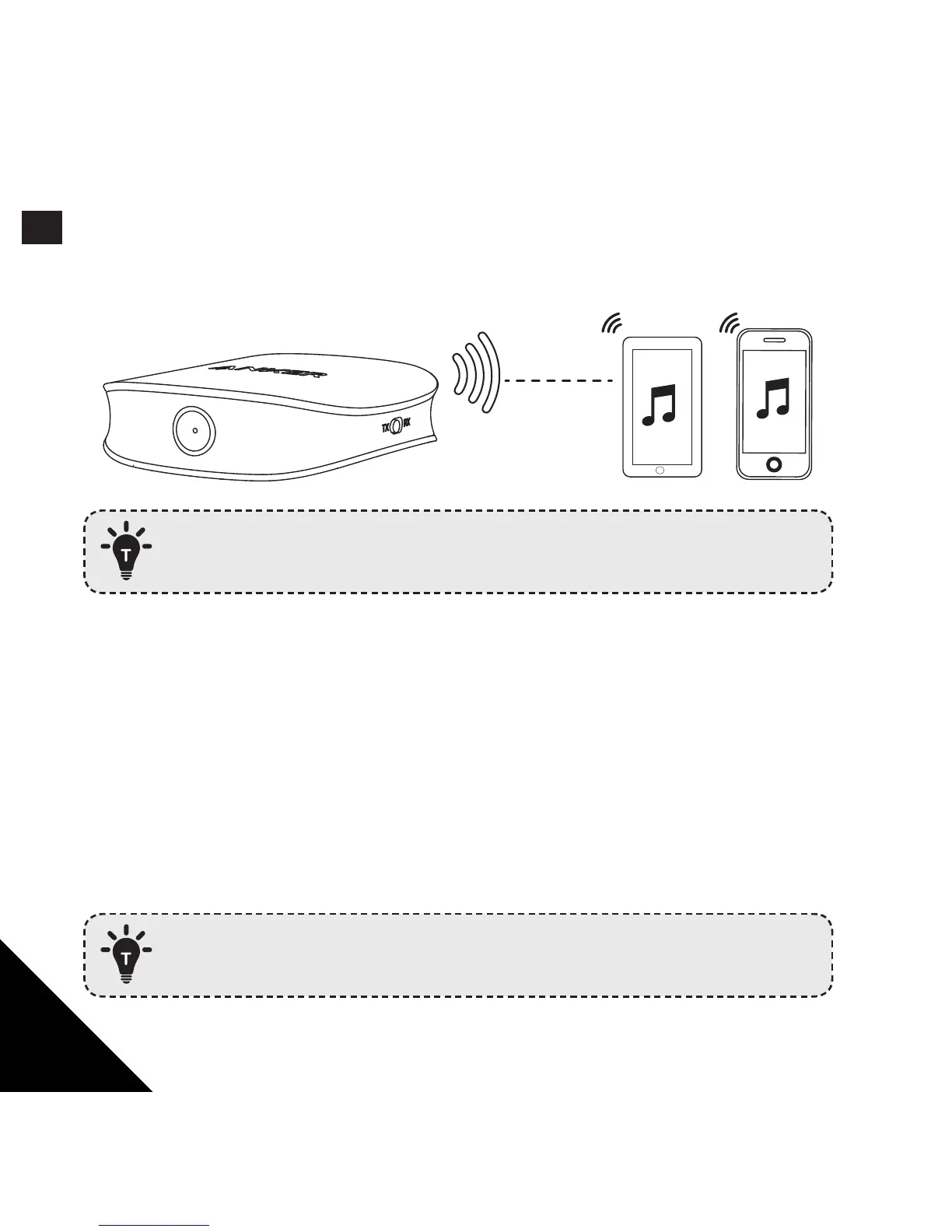 1. Connettere il primo telefono cellulare a Soundsync, disattivare il