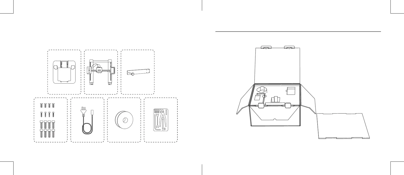 1. Open de doos en plaats de schuimrubberen afdekking op de grond.