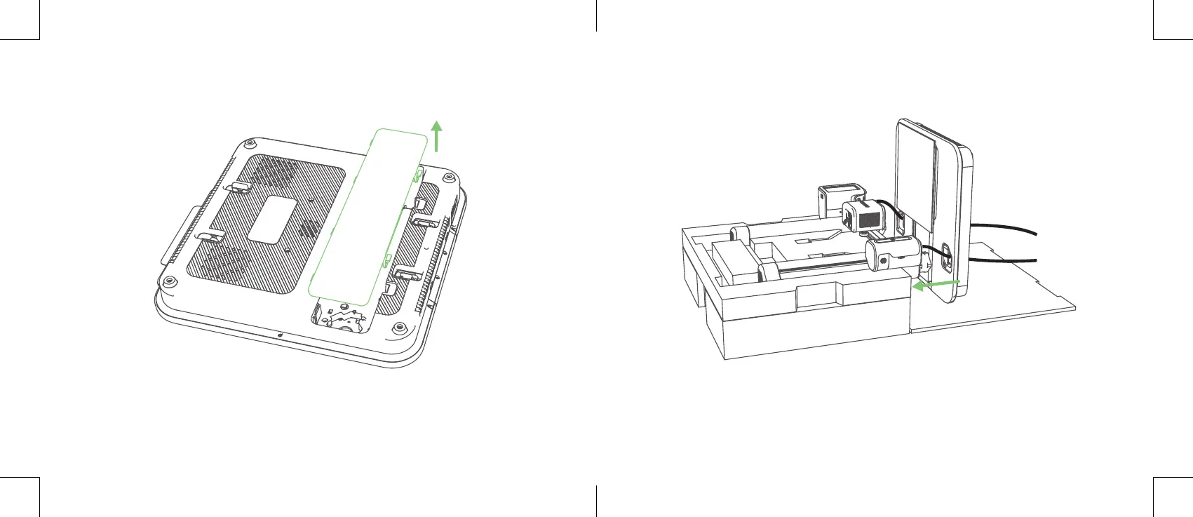 6. Monte a plataforma nos orifícios. 5. Retire a tampa inferior da plataforma.