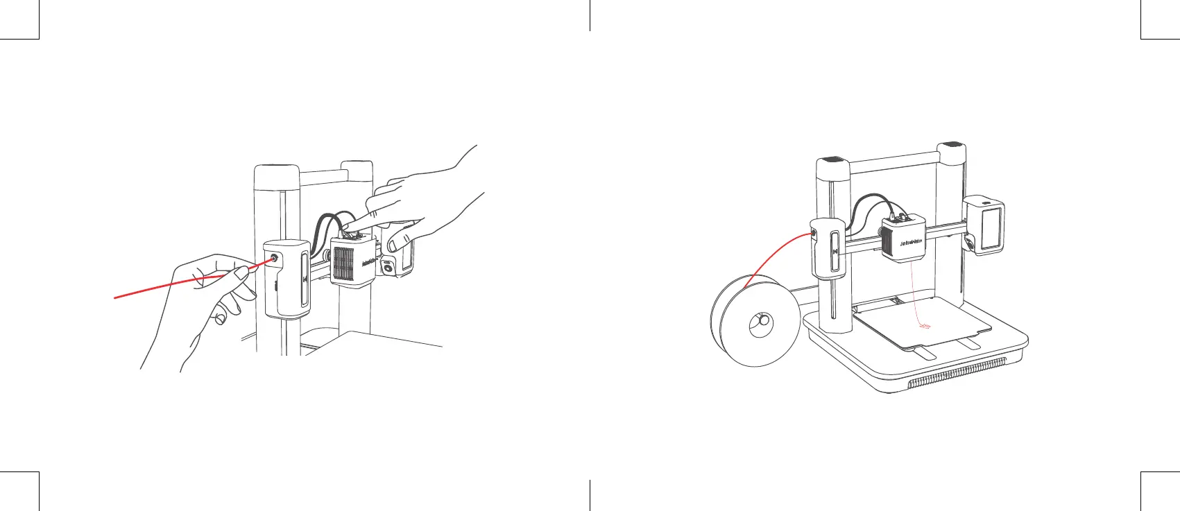 3. フィラメントをイラストの穴に挿入し、エクストルーダーに届くまで押し