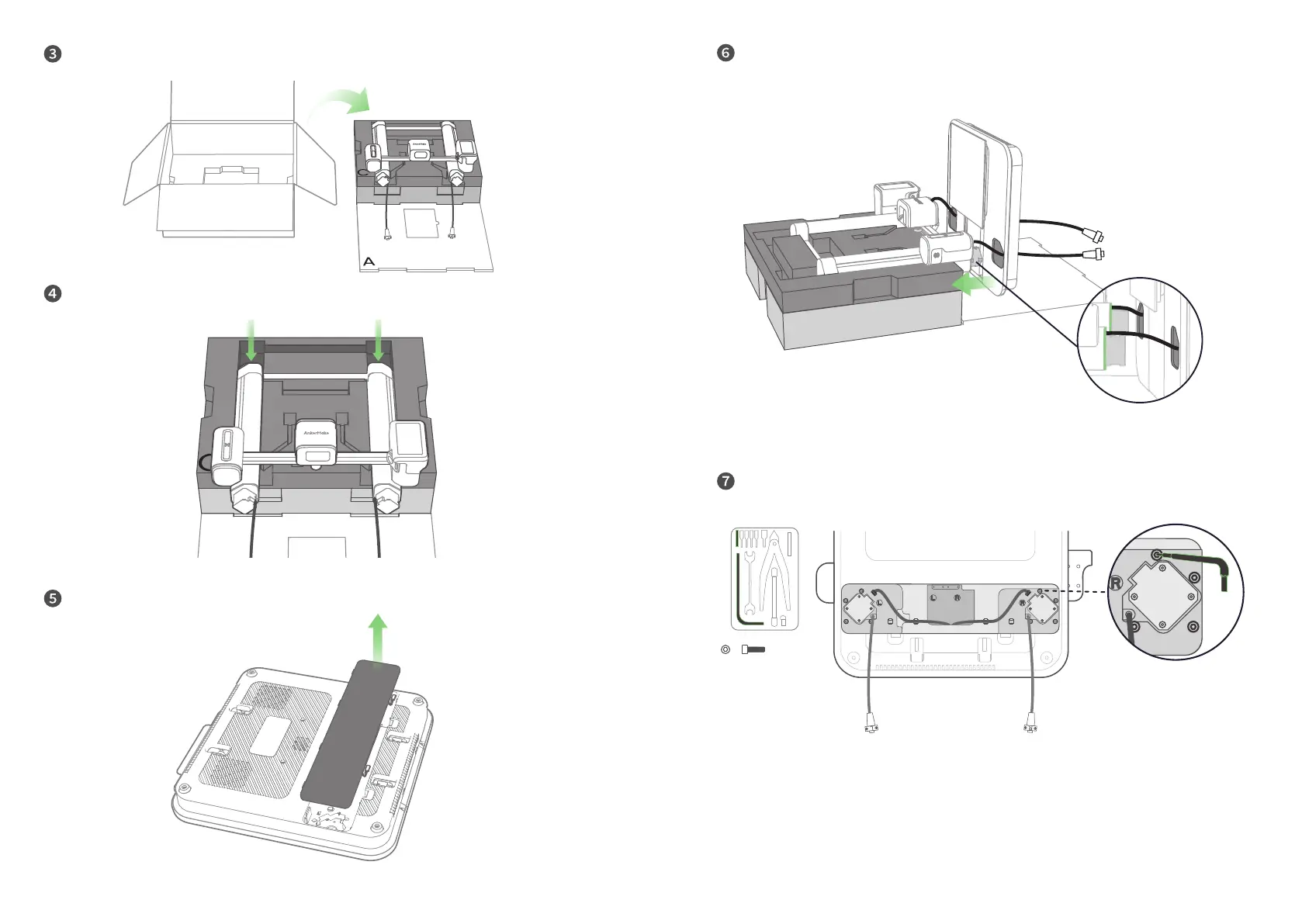 Route the USB-C cables through the holes, then insert the two supports of the gantry