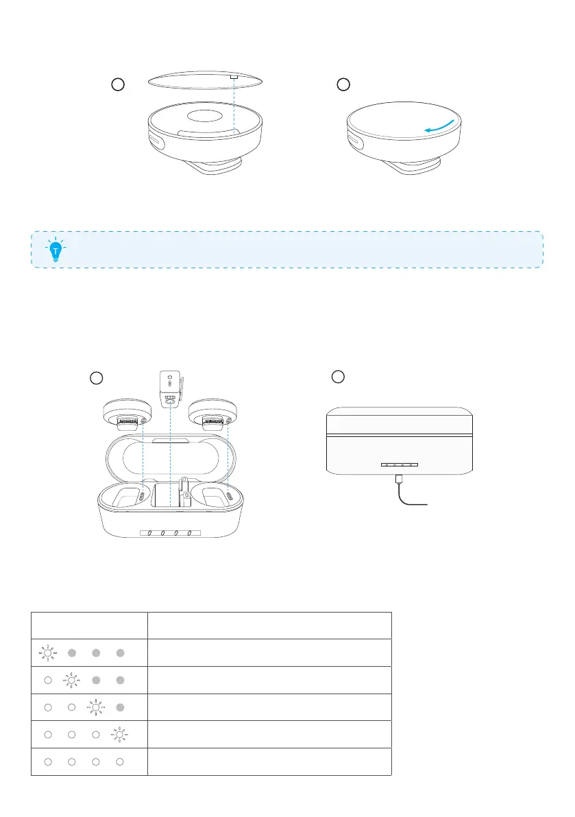 1. Inserire il ricevitore e i trasmettitori nella custodia di ricarica e chiuderla.