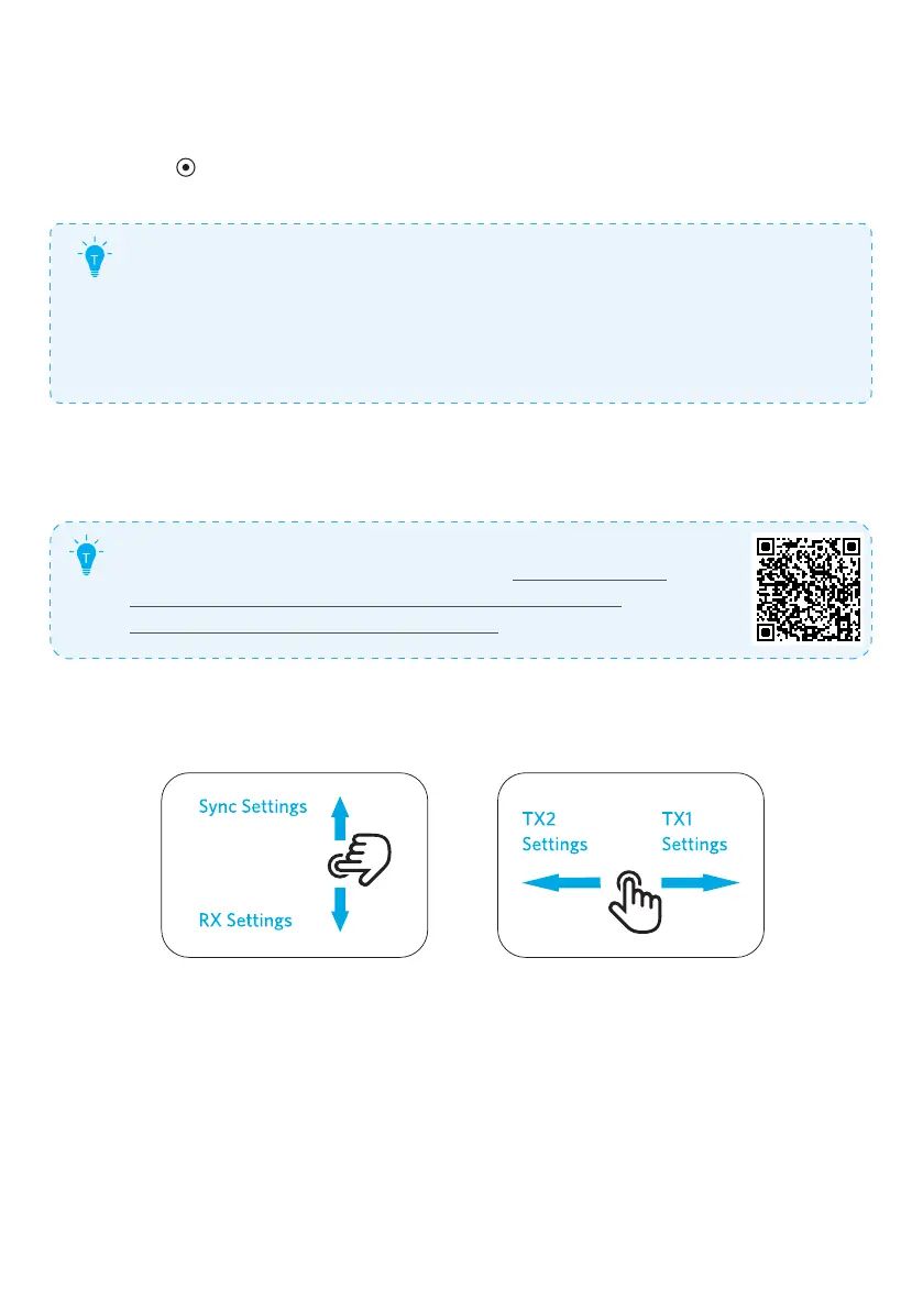 1. Aby otworzyć ustawienia nadajnika, przesuń palcem w lewo lub w prawo po jego