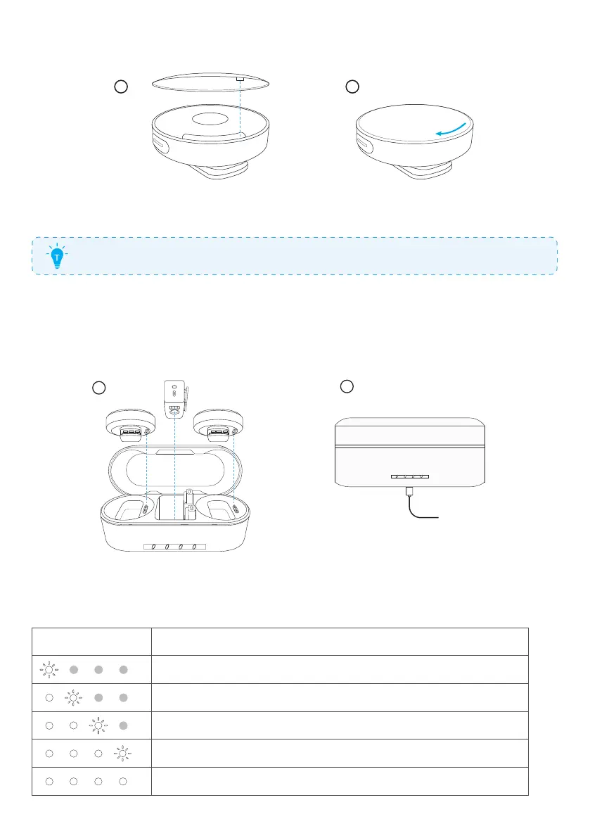 1. Поместите приемник и передатчики в зарядный футляр и закройте его.