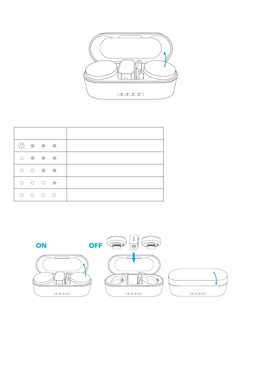 Откройте зарядный футляр, и приемник с передатчиками автоматически включатся в