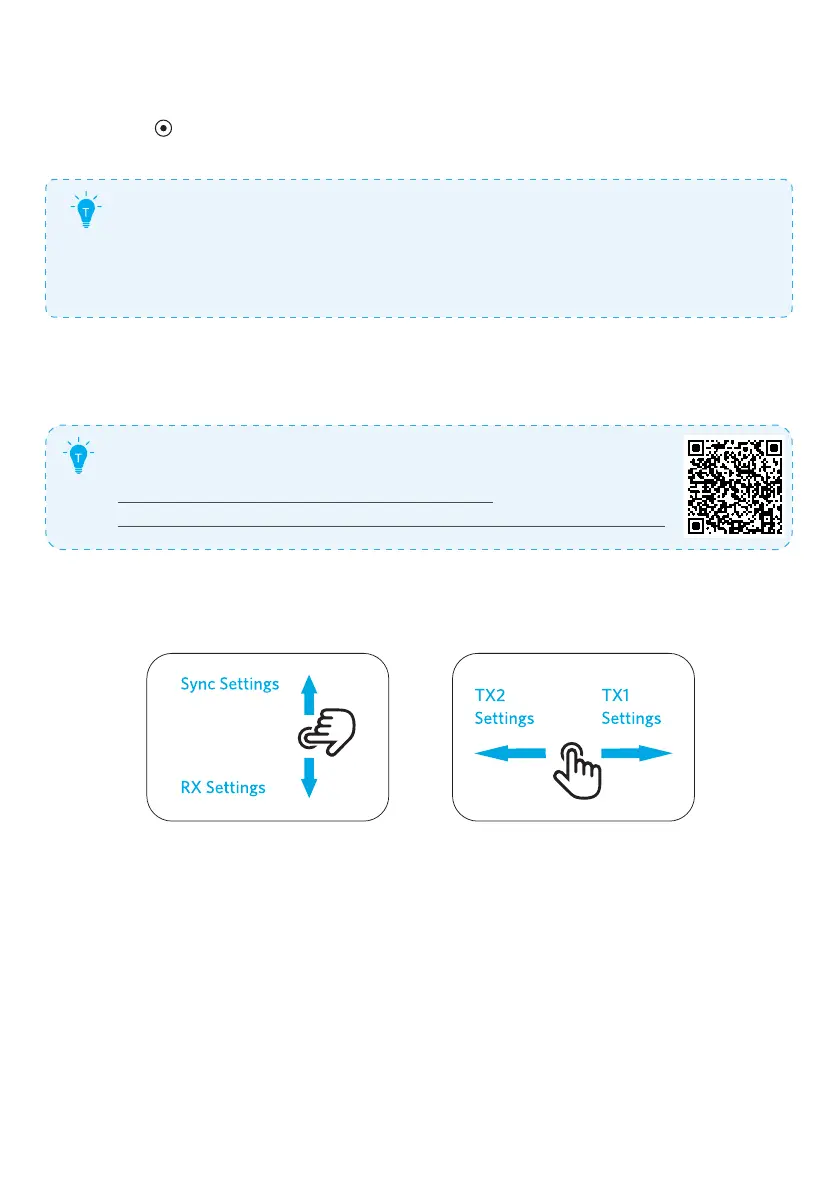 Svep åt vänster/höger för att justera inställningarna för sändare 2 respektive 1.