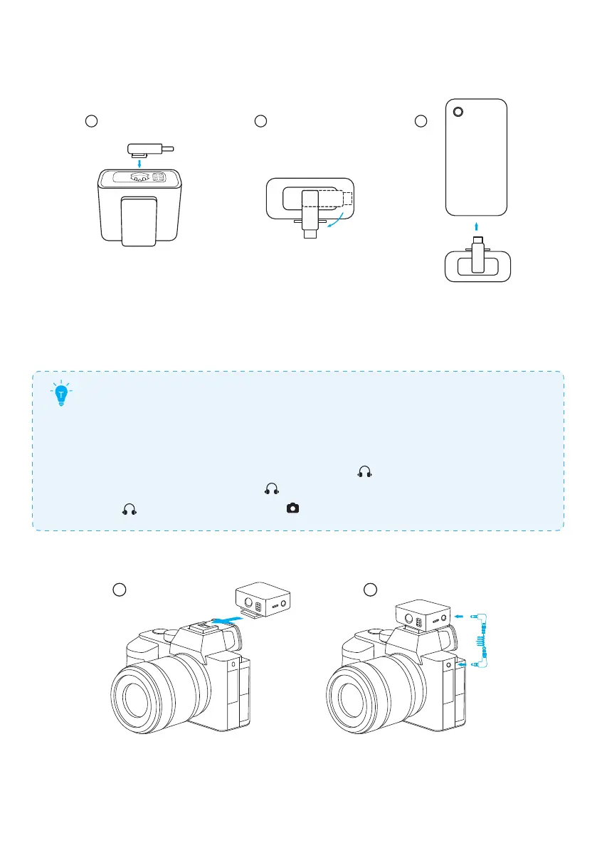 您的麦克风可以录制音频并将其传输到手机。 将接收器连接到手机: