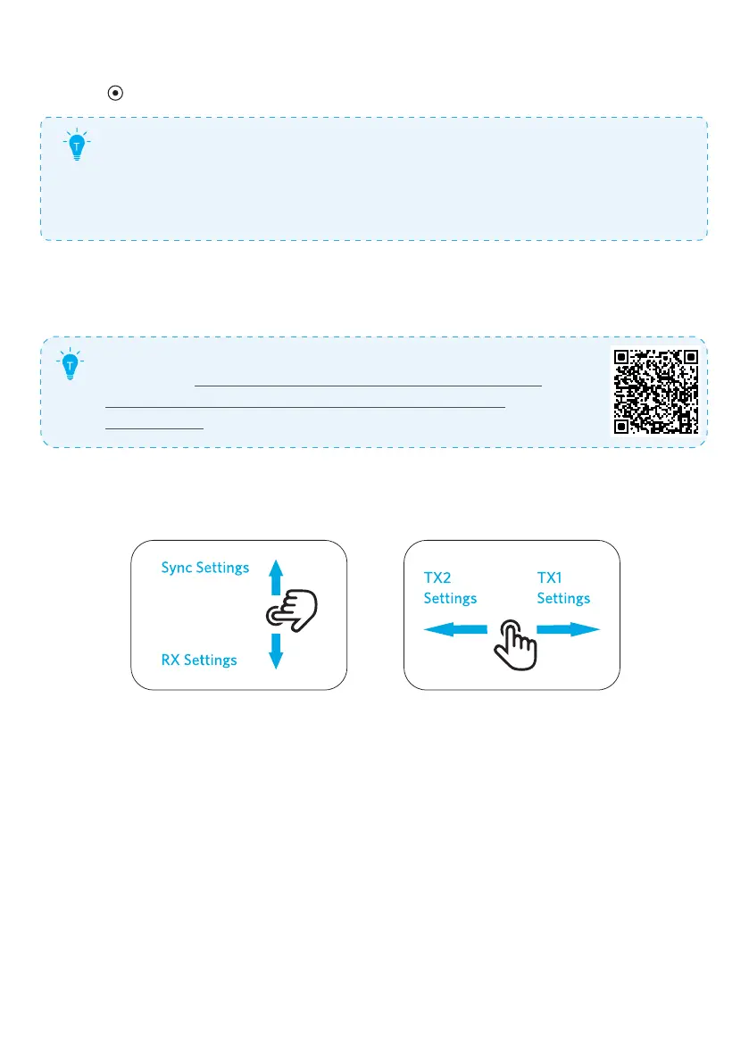 1. 在接收器屏幕上向左或向右滑动以访问发射器设置。