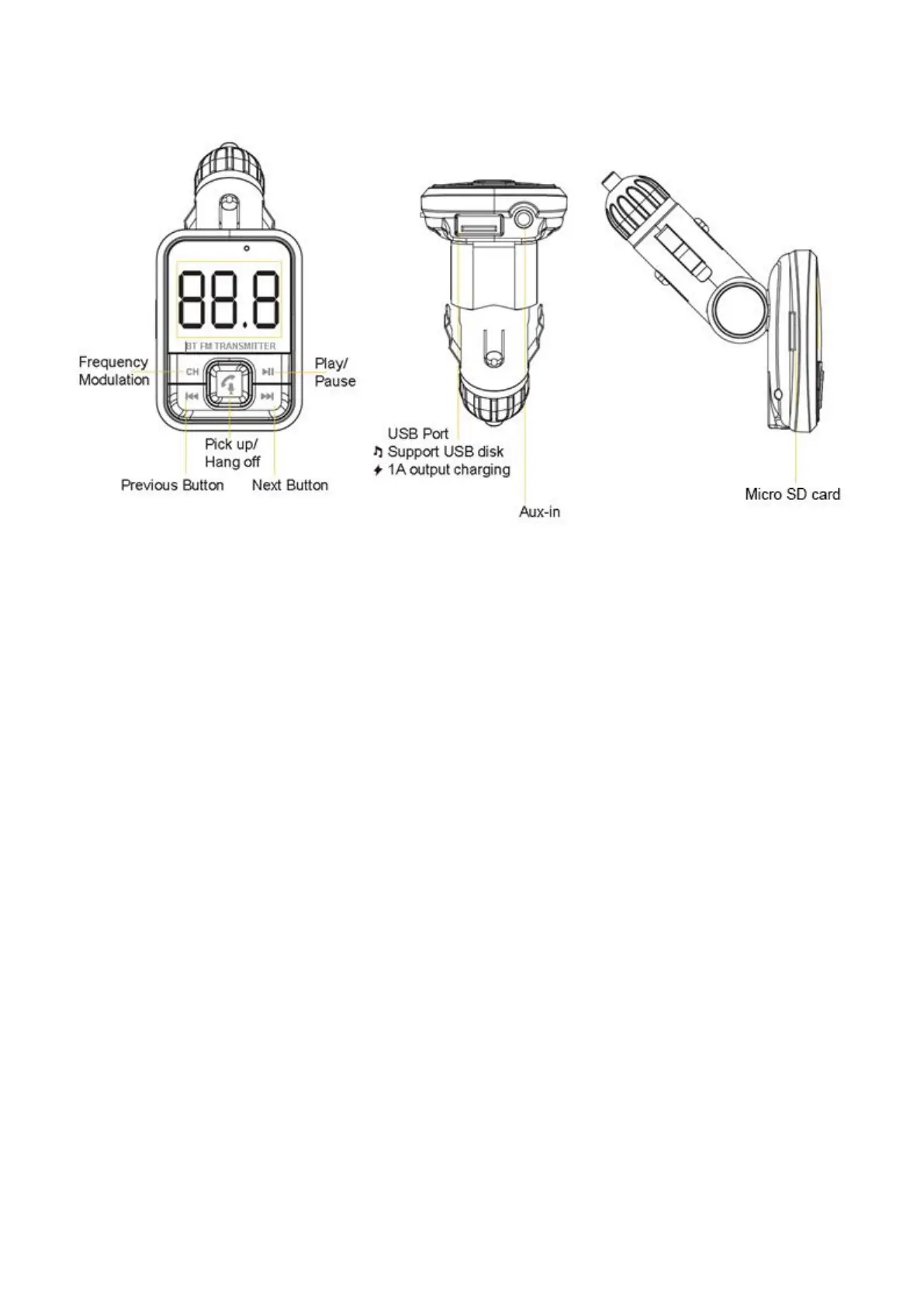 Connect the Bluetooth® FM transmitter to the car radio by FM transmitter.