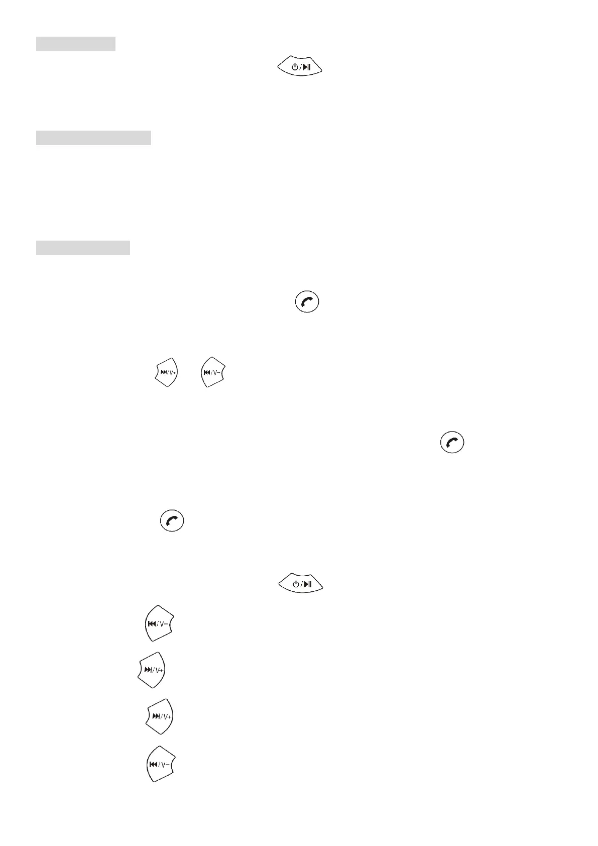 Power off: Press and hold the play/pause button for 3 seconds, then the indicator light will go off.