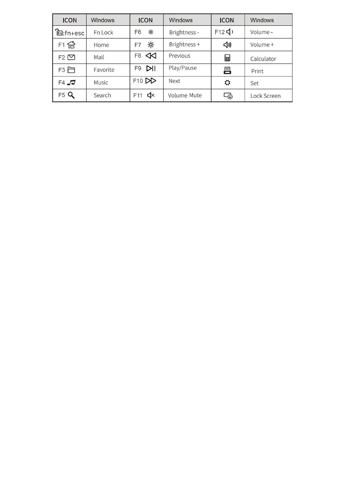 Note: The hot key : Volume Mute, Volume-, Volume+, Calculator, Print, Set and Lock screen