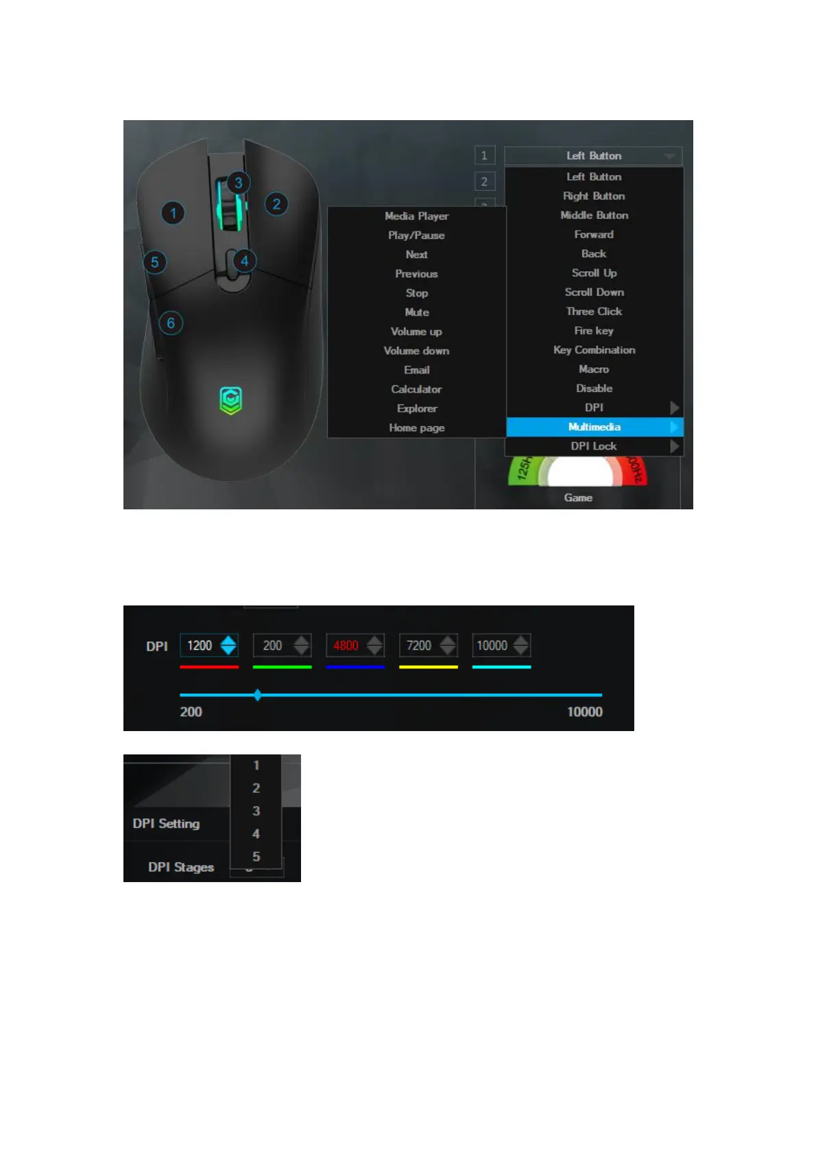 1) Set the DPI between 1200-10000 to meet your needs. (The default DPI setting is between