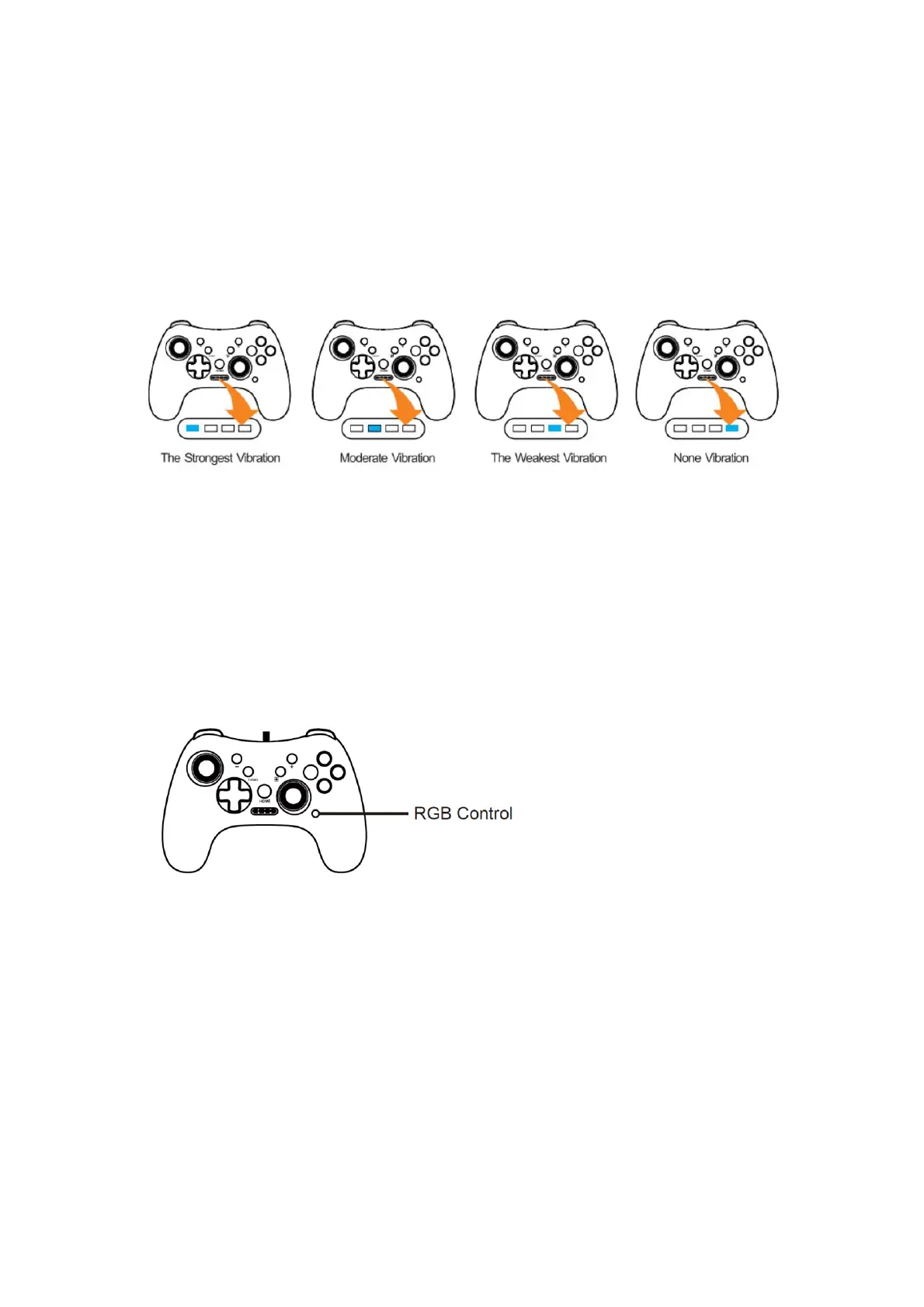 This controller have 4 levels of vibration intensity and Strongest/ Moderate/ Weakest/None