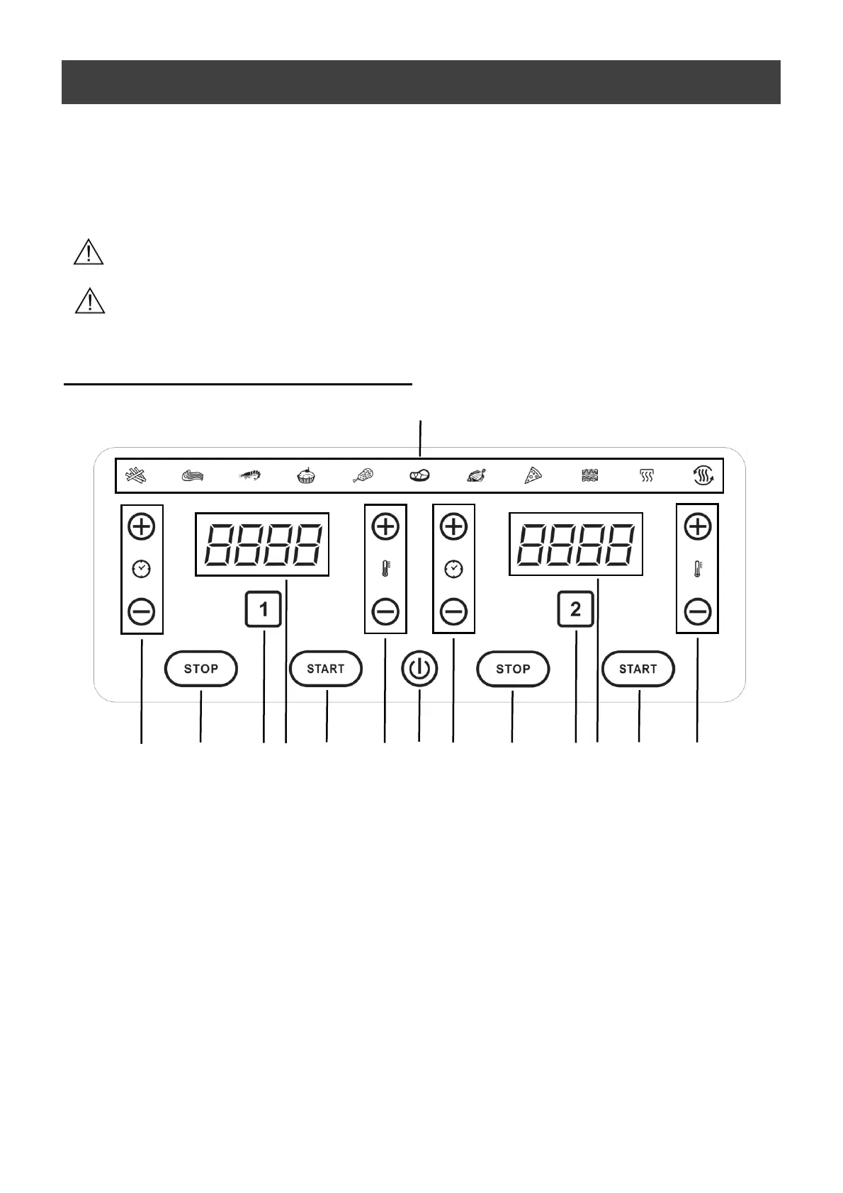 WARNING! This is an oil-free fryer that works on hot air. Do not fill with oil, frying fat or