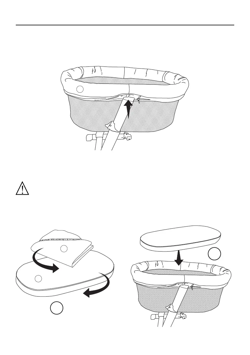 1. Attach the bassinet (A) handrail joint to the top of the assembled frame stand.