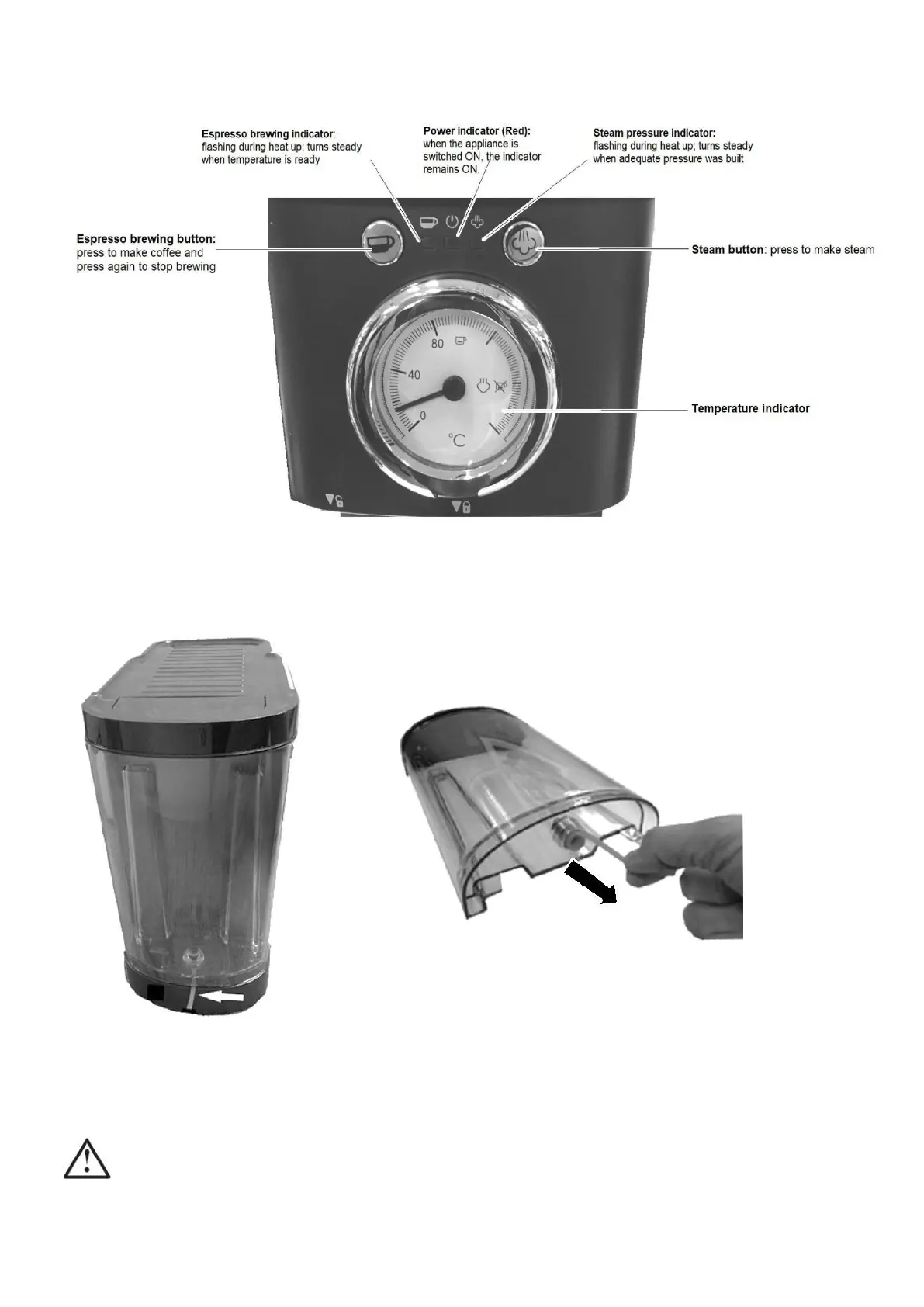 Remove all the plastic bags, packaging material on the Espresso Machine.