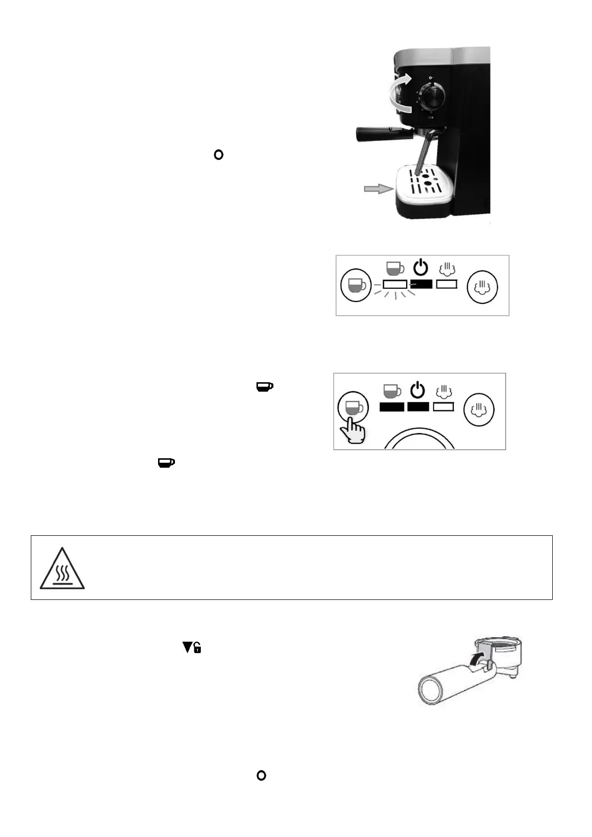Risk of burning! Parts of the espresso machine become very hot during operation. Do not