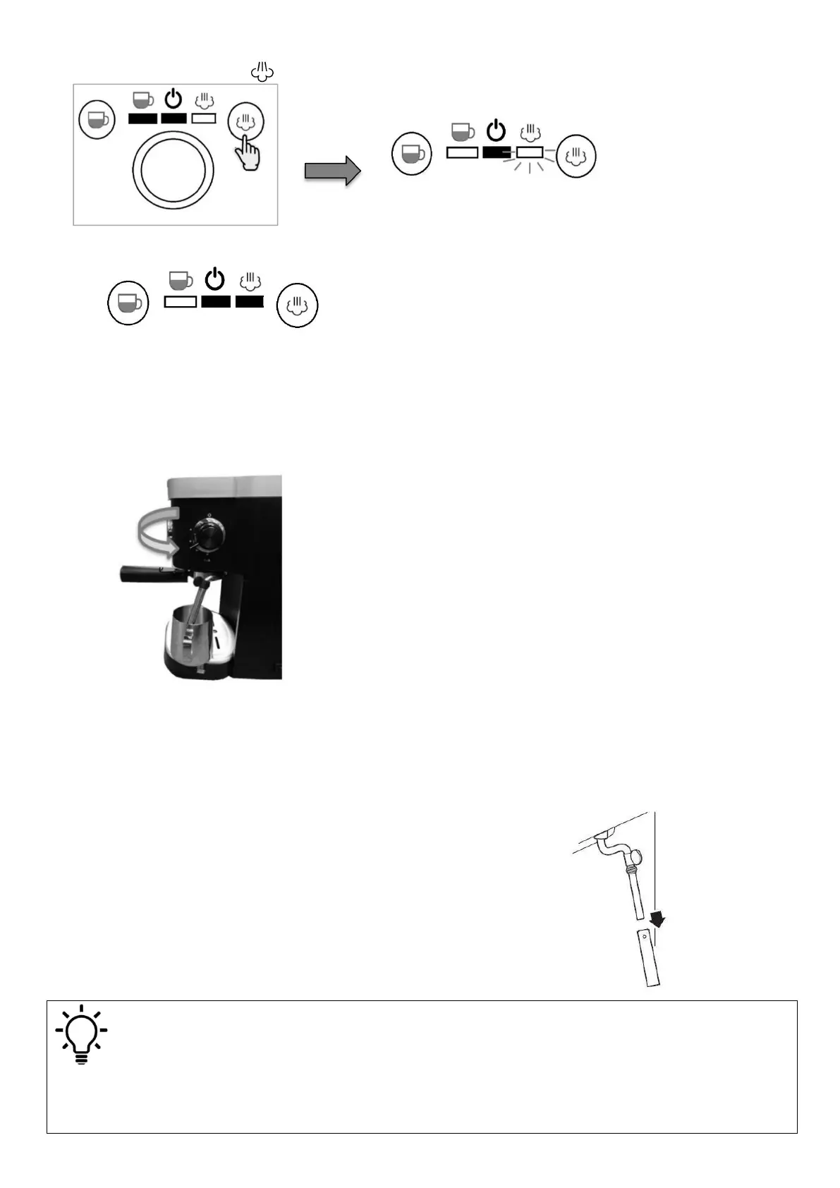 cup underneath the milk frother nozzle and turn on the steam controller. Wait for approx. 15 seconds, then