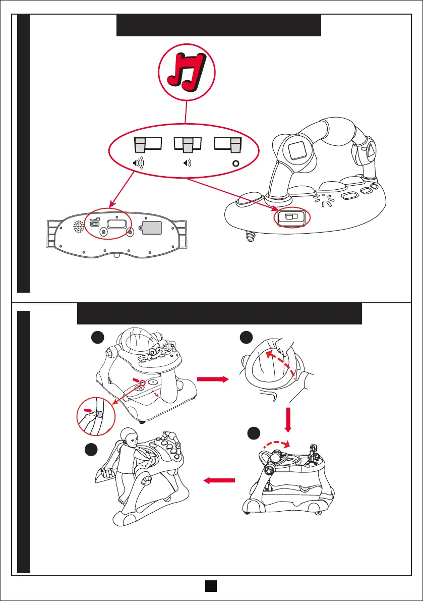 anko Combo Walker - Usage and Conversion; Using the Toy Tray Features; Converting to Push Walker